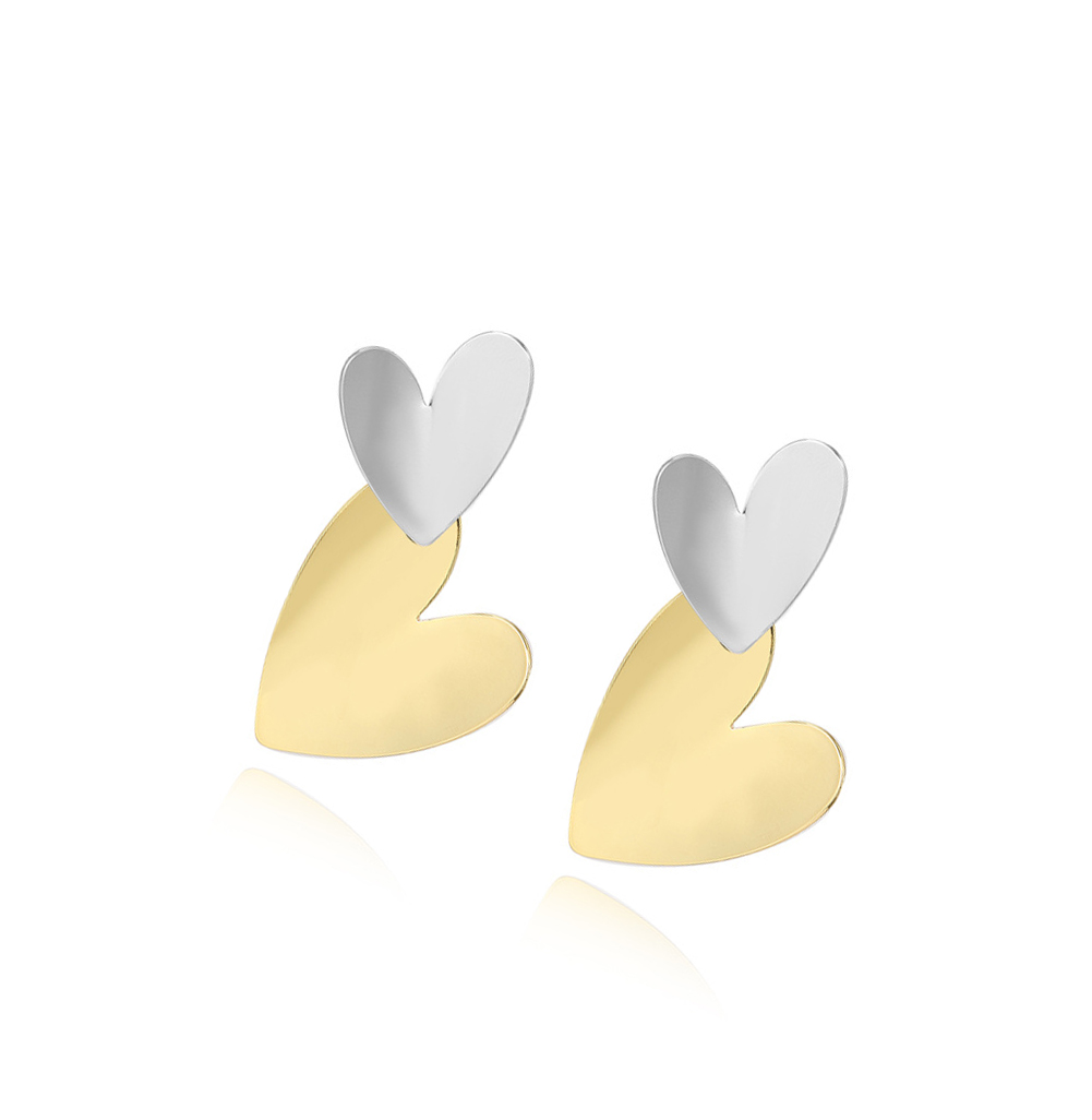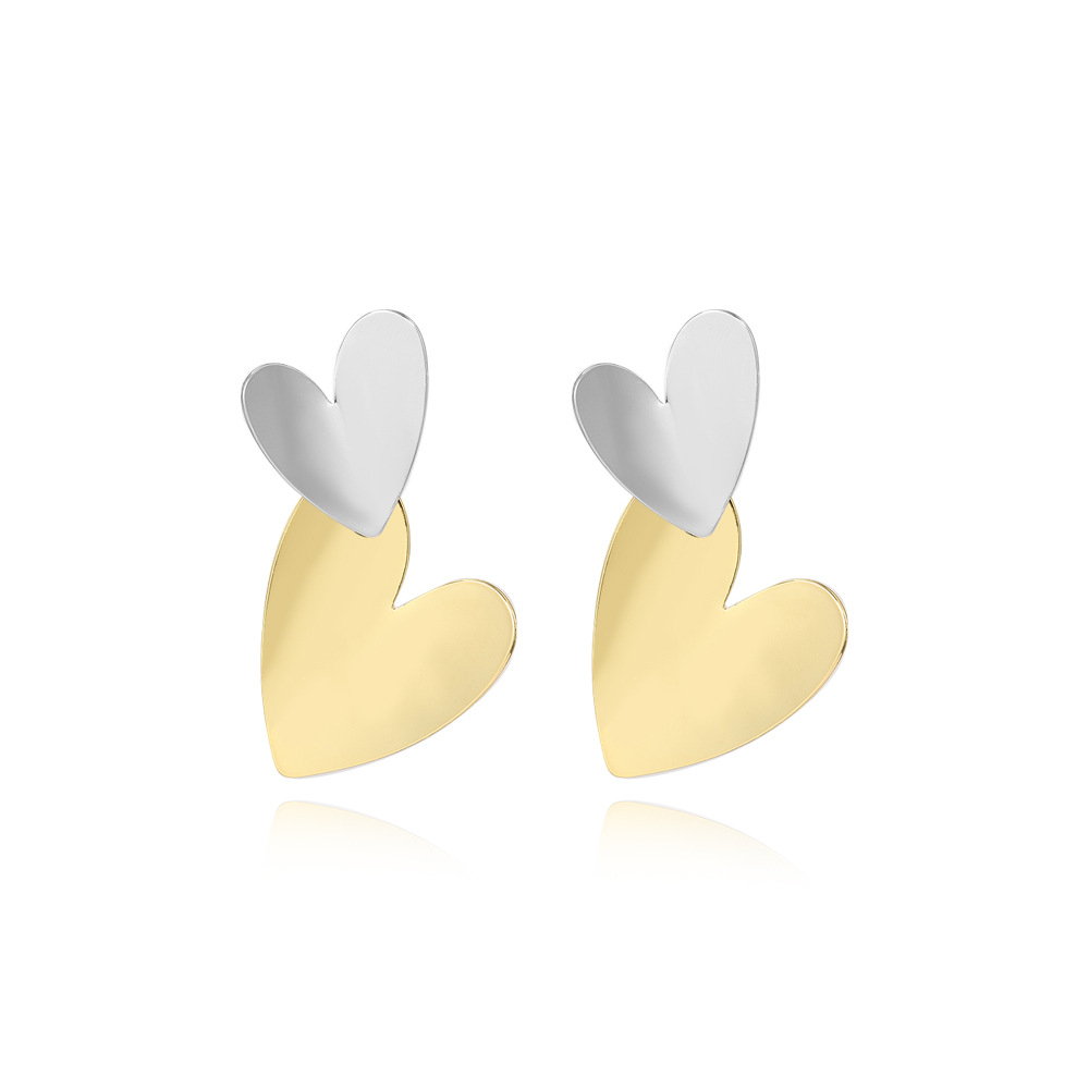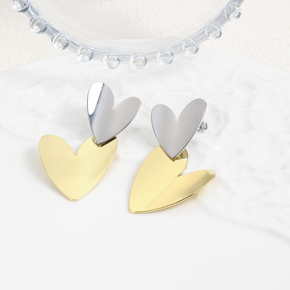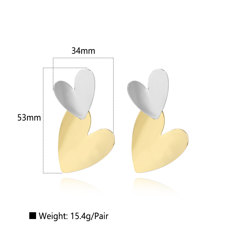 Boucle d'oreille en goutte de laiton, coeur, Placage, pour femme, couleurs mélangées, Vendu par paire