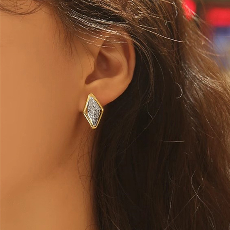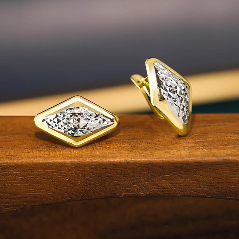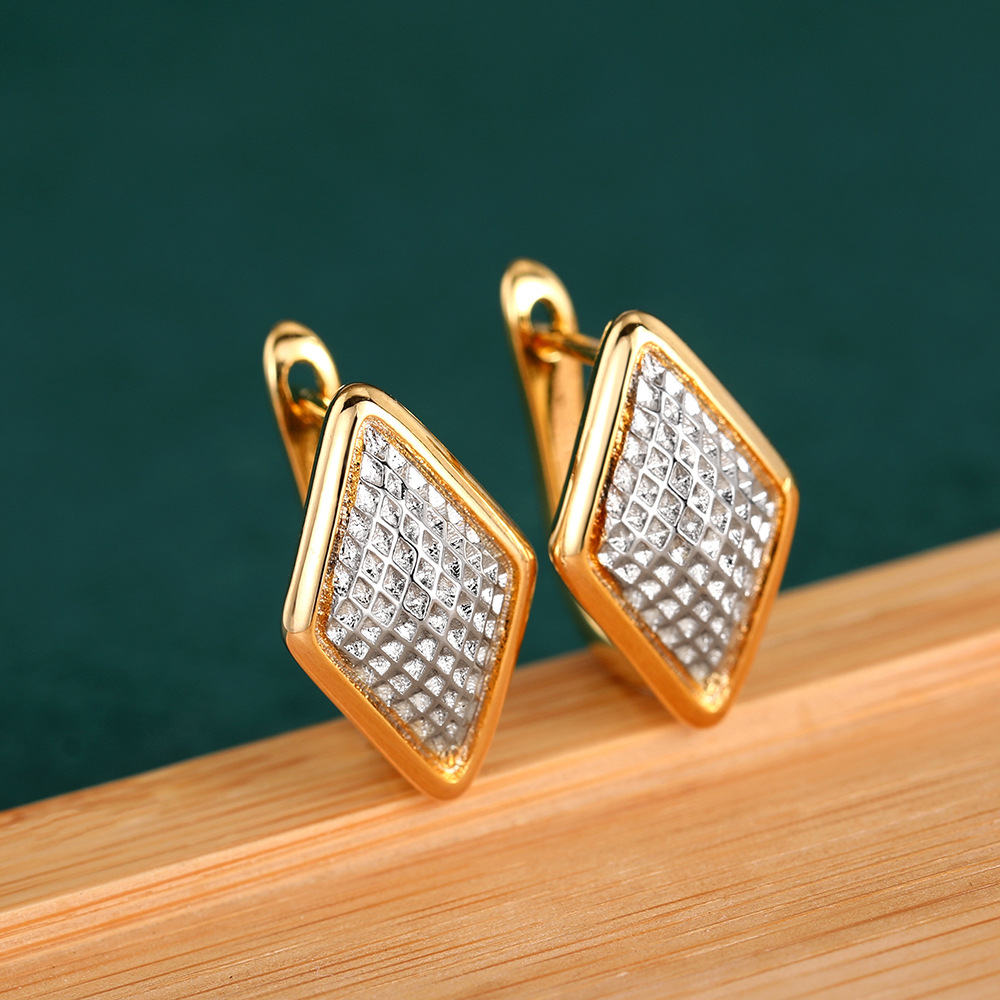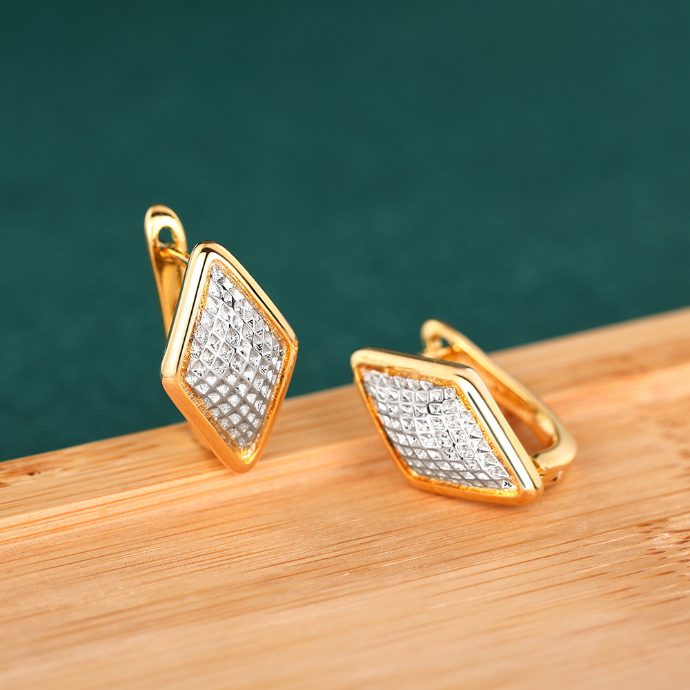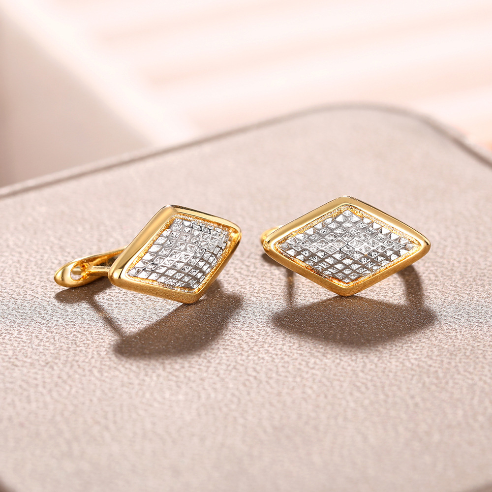 Boucle d'oreille en goutte de laiton, Losange, Placage, bijoux de mode & pour femme & deux tons, Vendu par paire