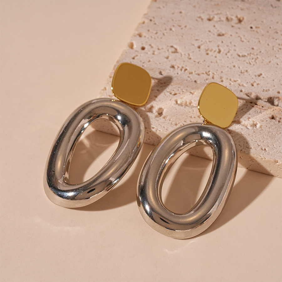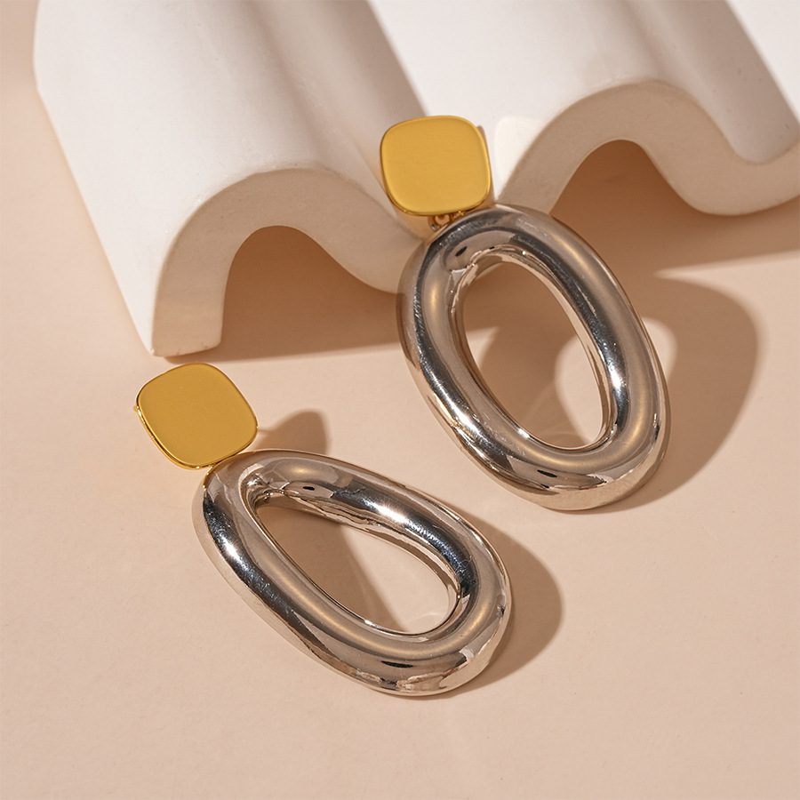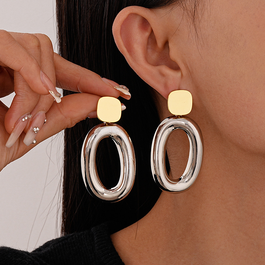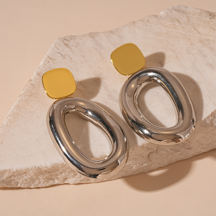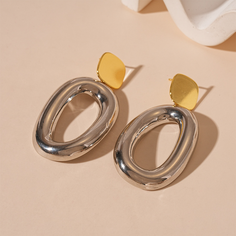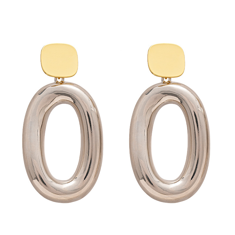 Boucle d'oreille en goutte de laiton, avec alliage de zinc, Placage, pour femme & deux tons & creux, 60x30mm, Vendu par paire