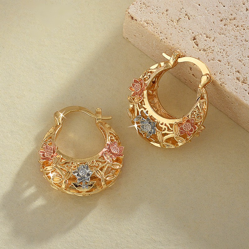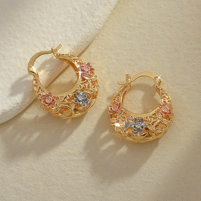 Boucle d'oreille en goutte de laiton, Placage de couleur d'or, bijoux de mode & pour femme & creux, Vendu par paire