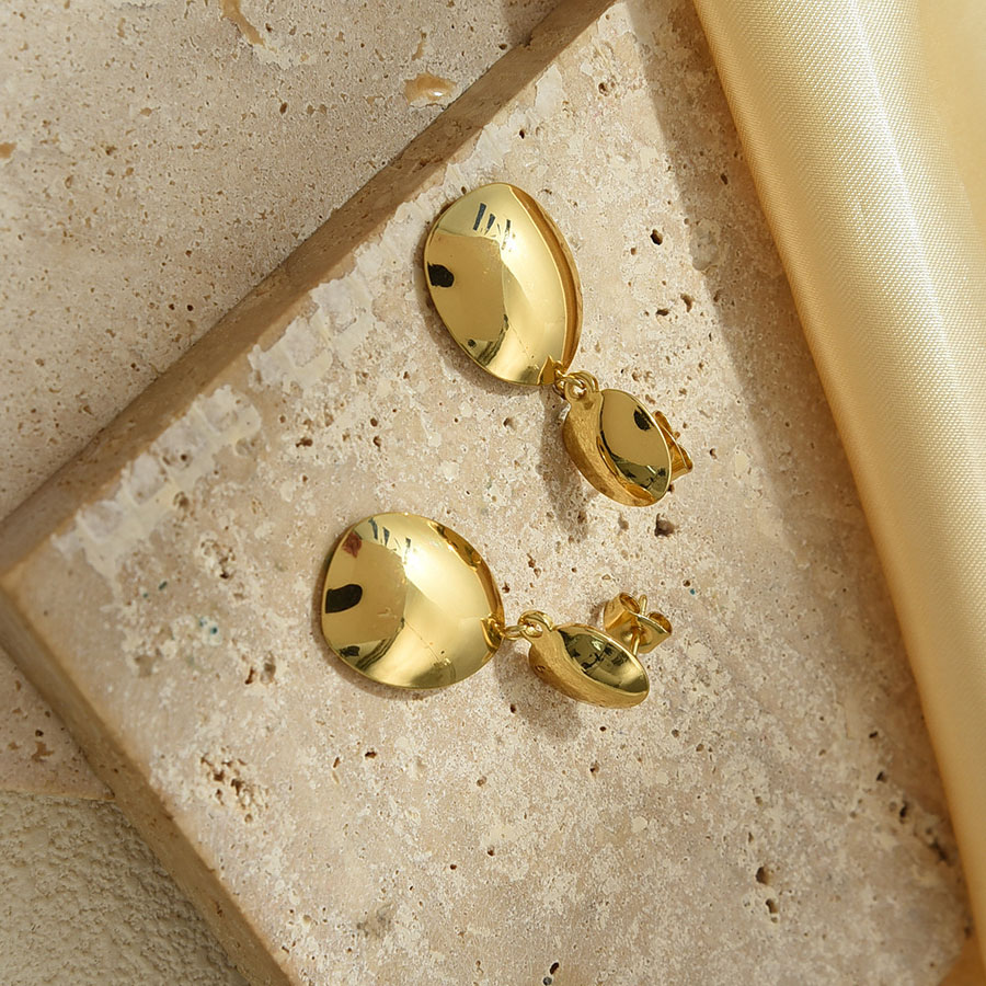 Boucle d'oreille goutte inox, Acier inoxydable 304, Plaqué or 18K, bijoux de mode & pour femme, doré, 17x34.5mm, Vendu par paire