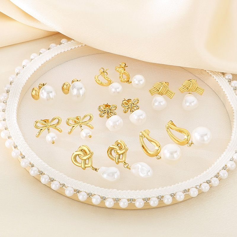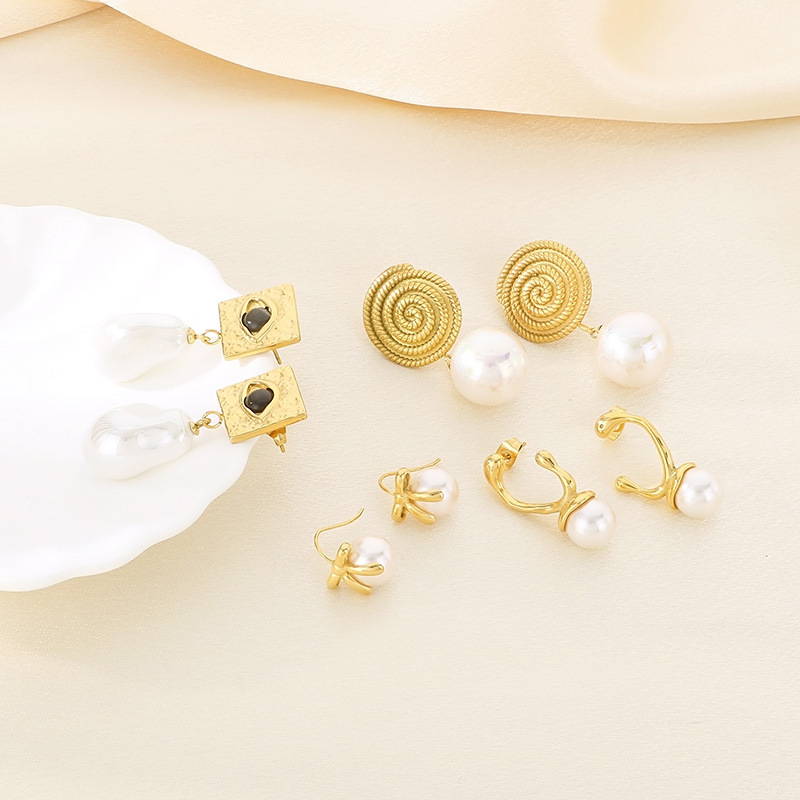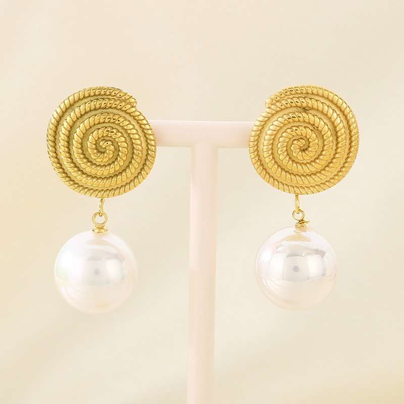 Boucle d'oreille goutte inox, Acier inoxydable 304, avec coquille, Placage ionique sous vide, pour femme, plus de couleurs à choisir, Vendu par paire