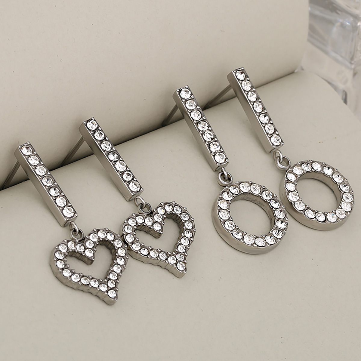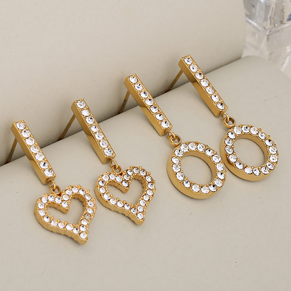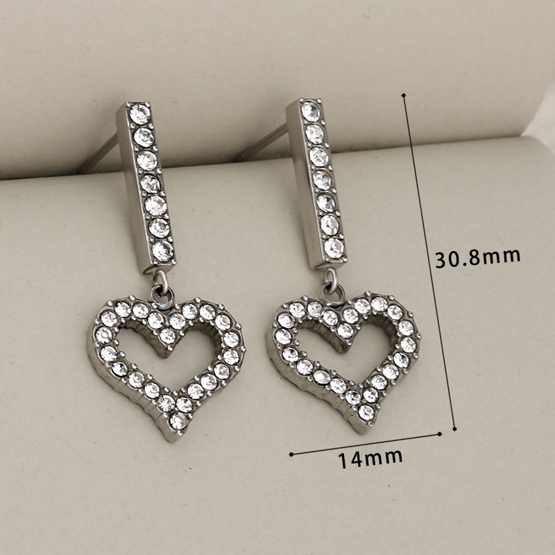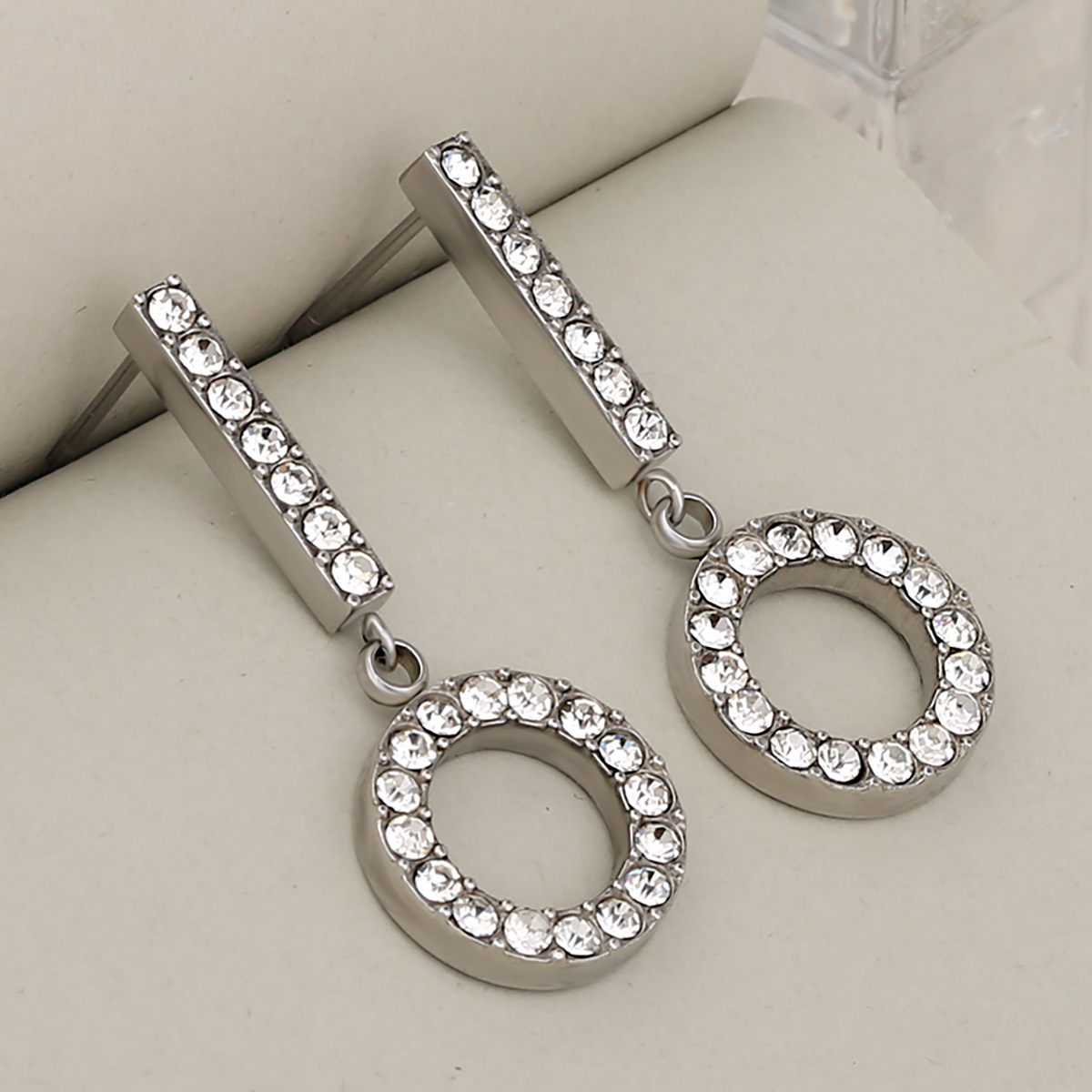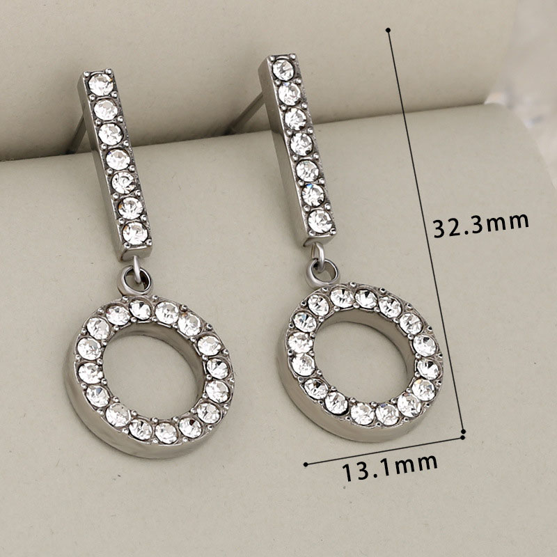 Boucle d'oreille goutte inox, acier inoxydable, avec strass, couleur originale  0.8mm, Vendu par paire