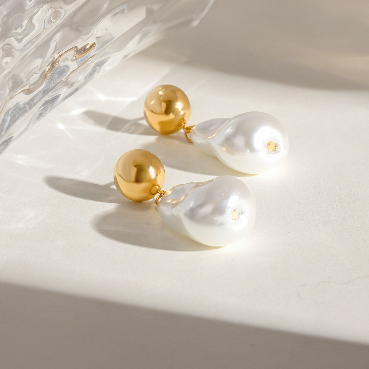 Boucle d'oreille goutte inox, Acier inoxydable 304, avec Plastique ABS perle, Placage de couleur d'or, bijoux de mode, couleurs mélangées, 15x35.1mm, Vendu par paire