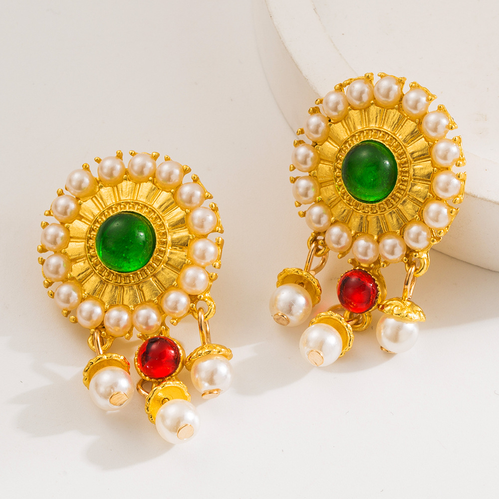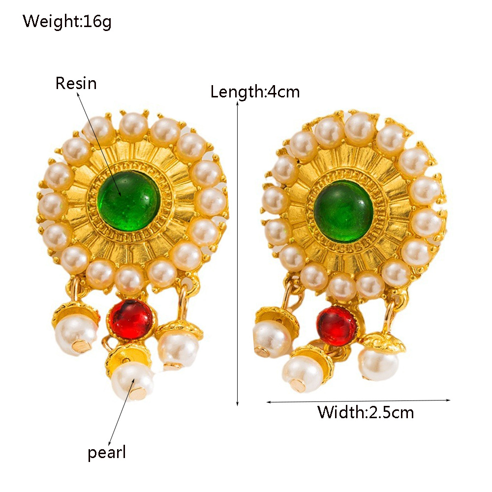Boucle d'oreille goutte inox, Acier inoxydable 304, avec résine & perle de plastique, Placage, bijoux de mode & styles différents pour le choix & pour femme, doré, Vendu par paire