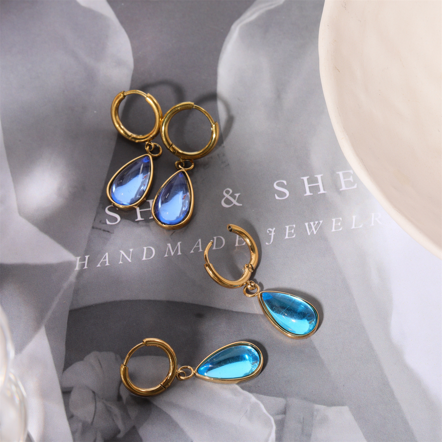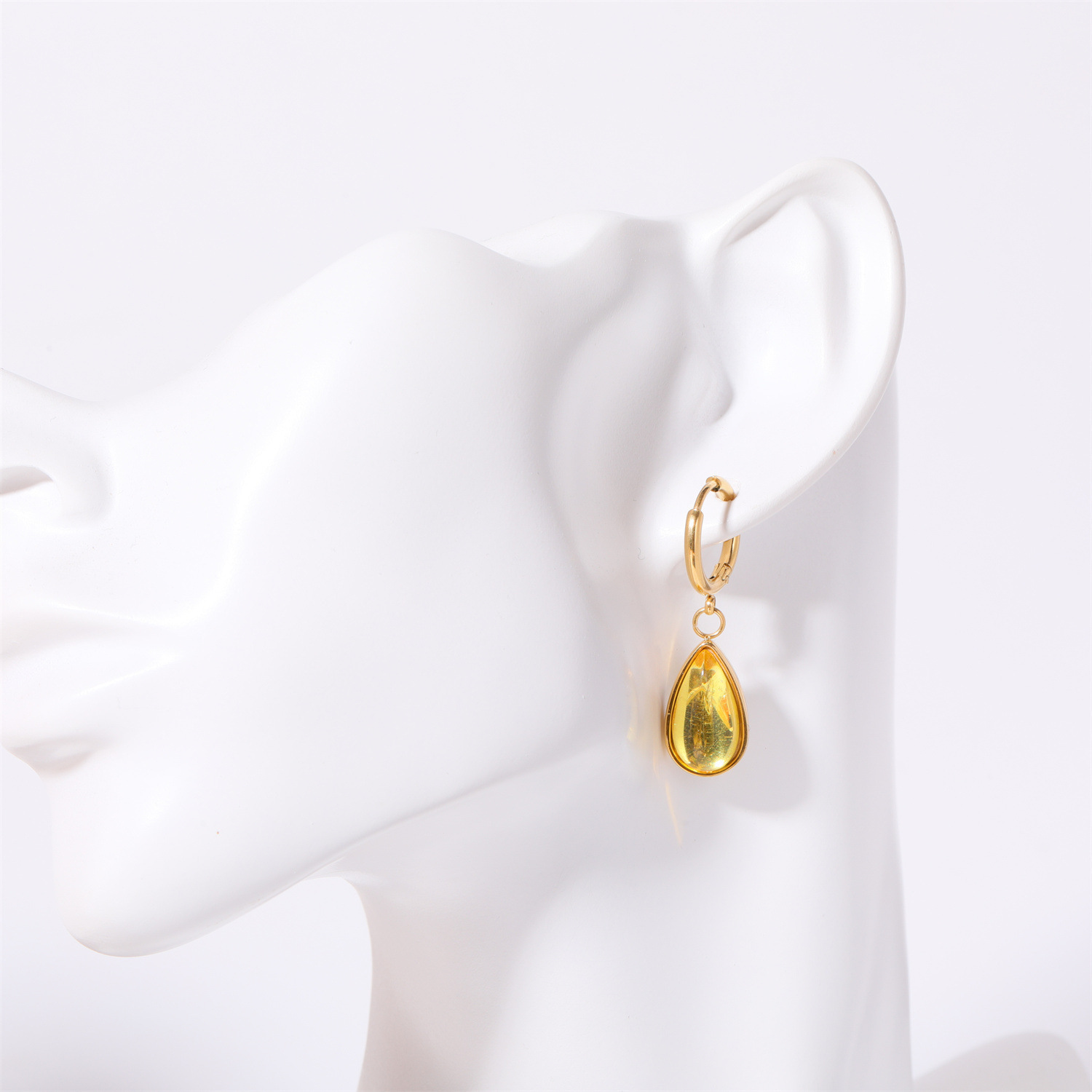 Boucle d'oreille goutte inox, acier inoxydable, avec strass, couleur originale  0.8mm, Vendu par paire