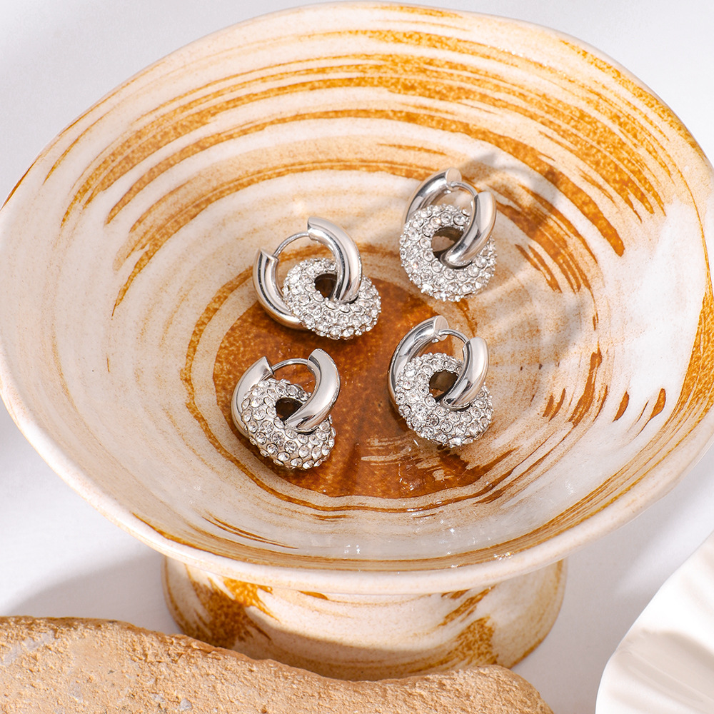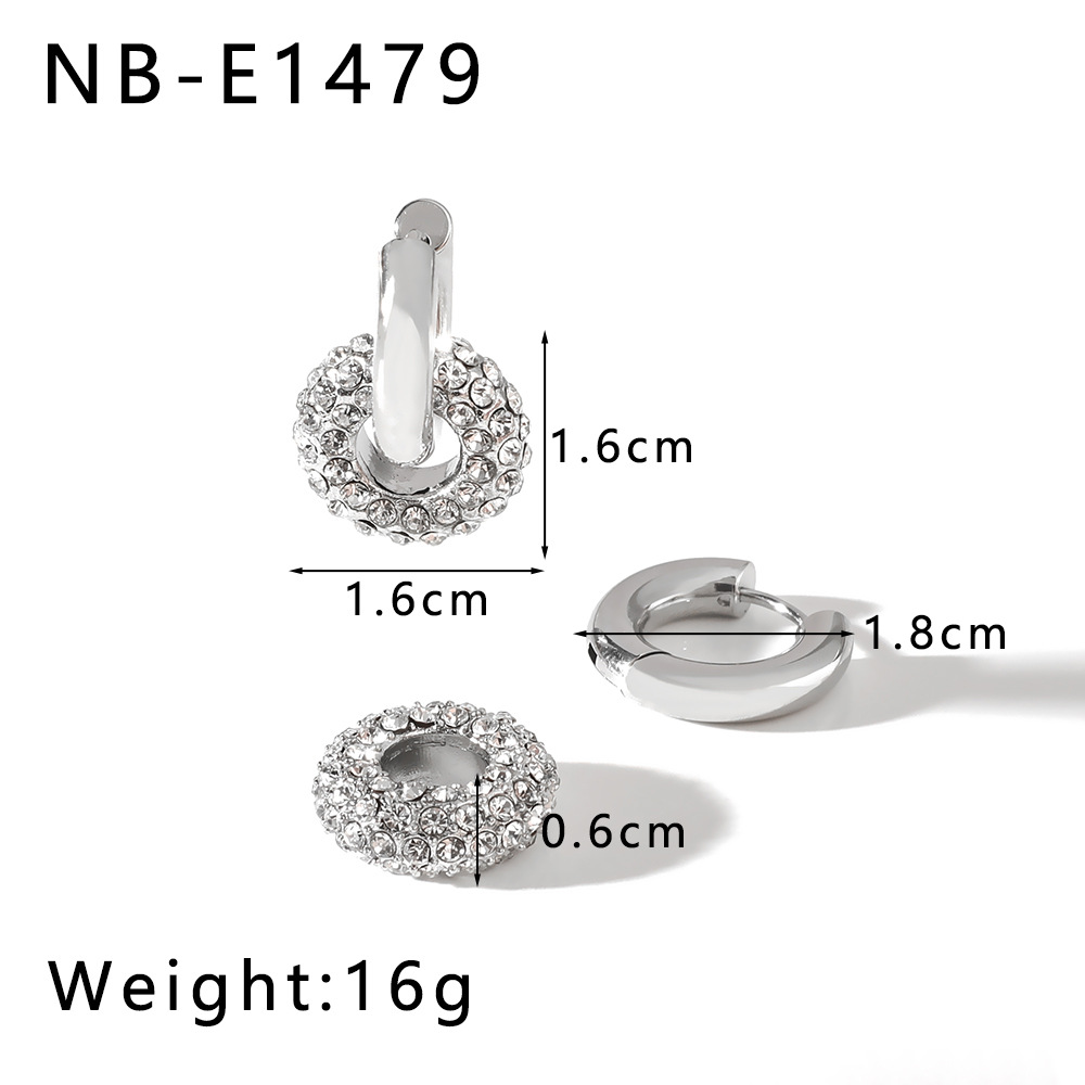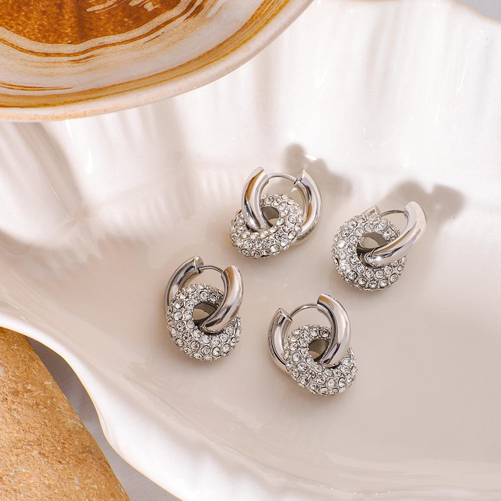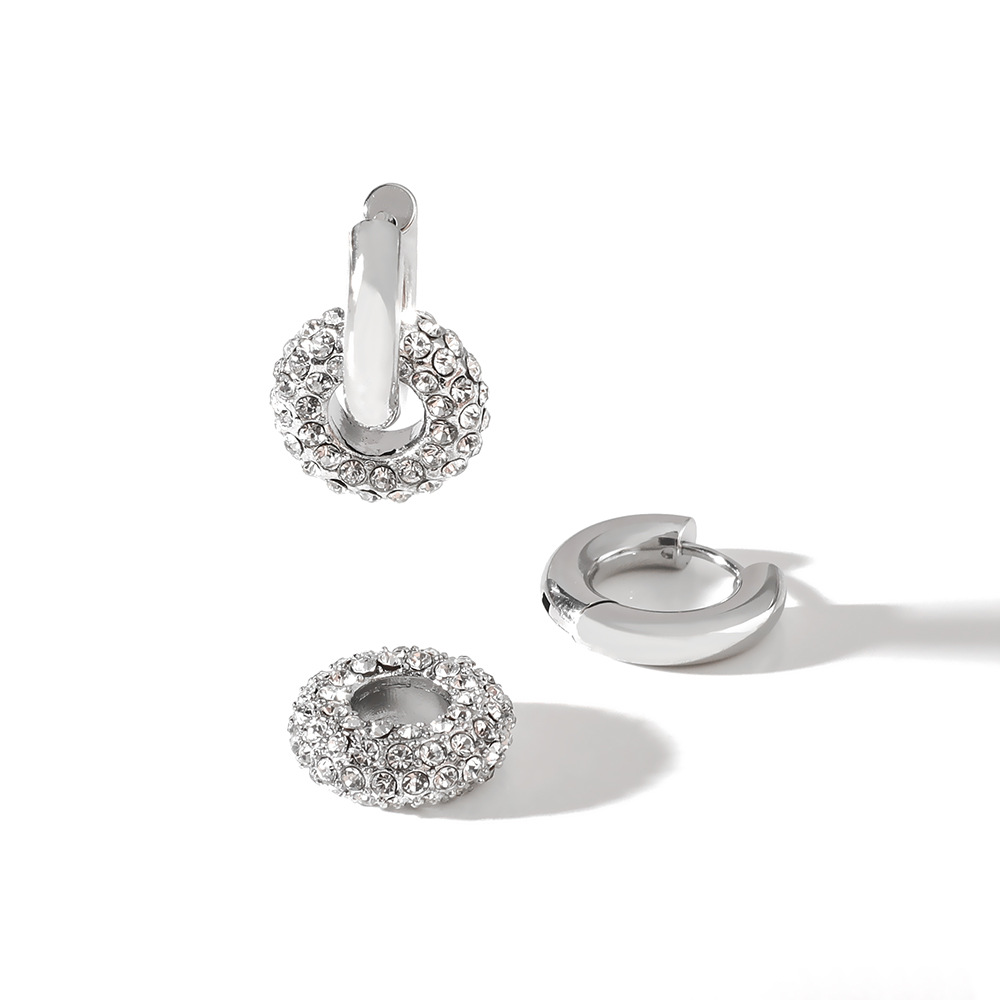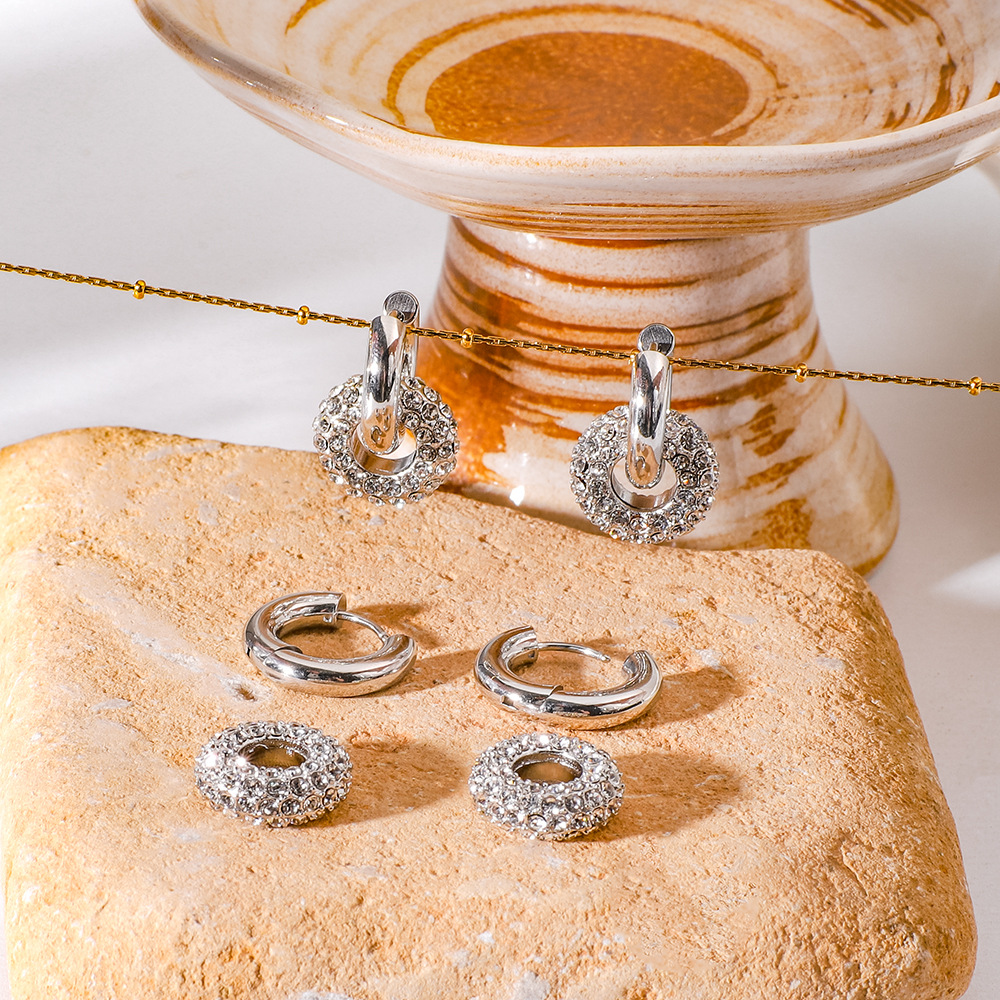 Boucle d'oreille goutte inox, acier inoxydable, avec strass, couleur originale  0.8mm, Vendu par paire