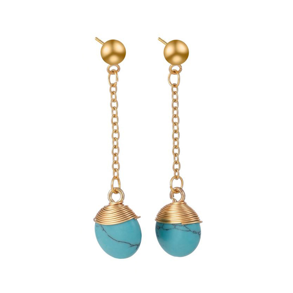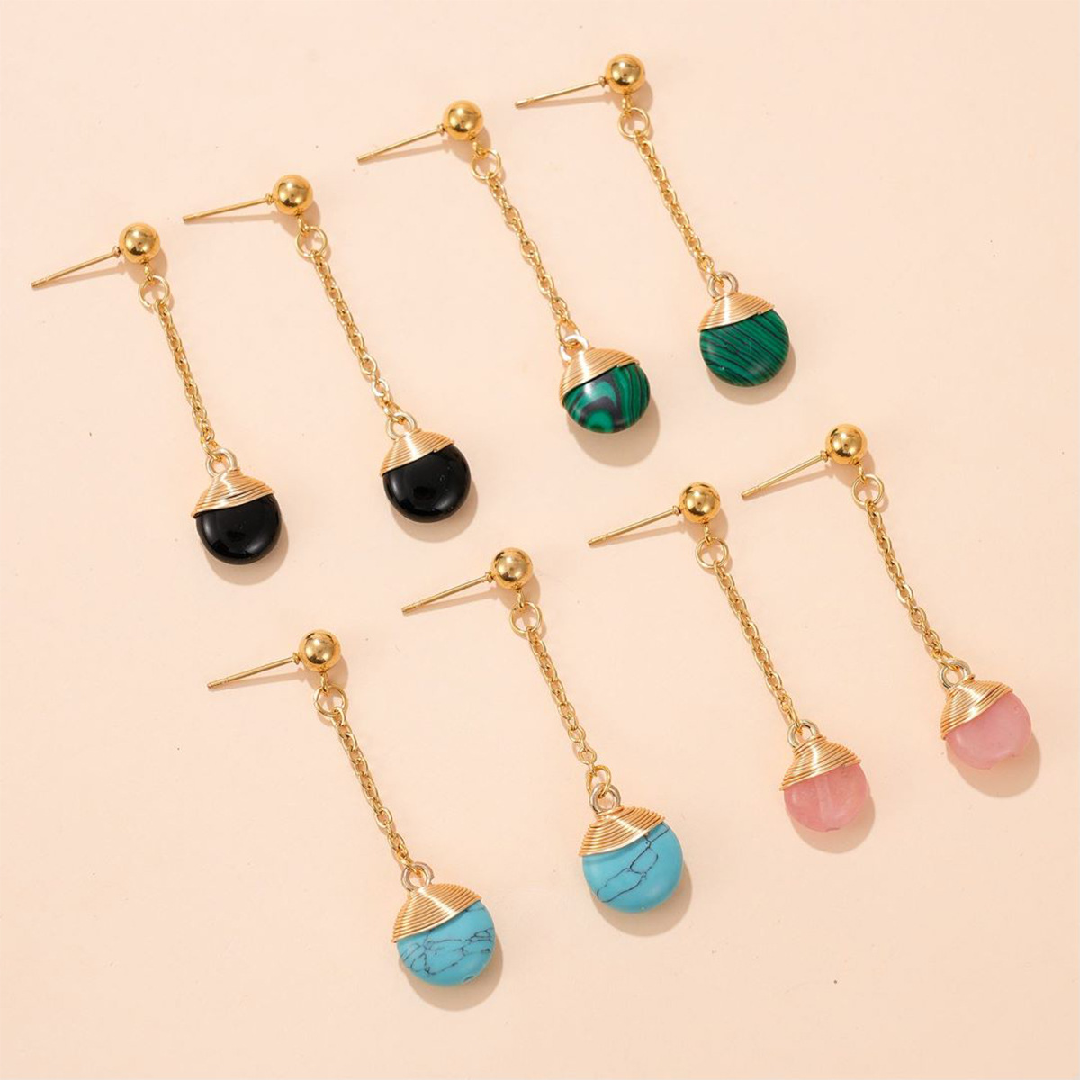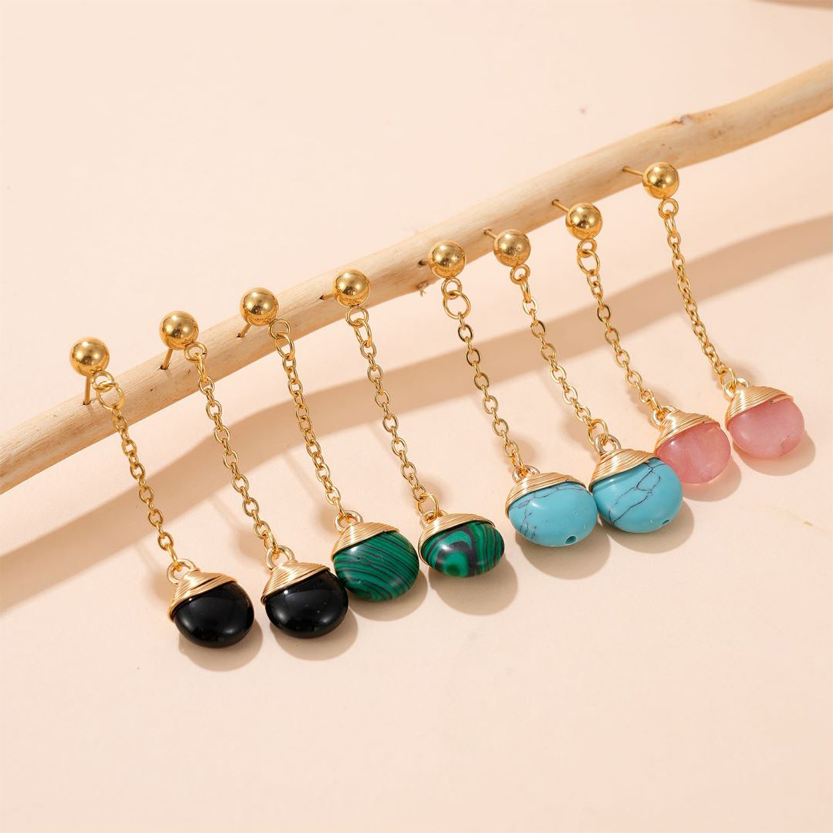 Boucle d'oreille goutte inox, Acier inoxydable 304, avec Pierre naturelle, Placage de couleur d'or, différents matériaux pour le choix & pour femme, plus de couleurs à choisir, Vendu par paire