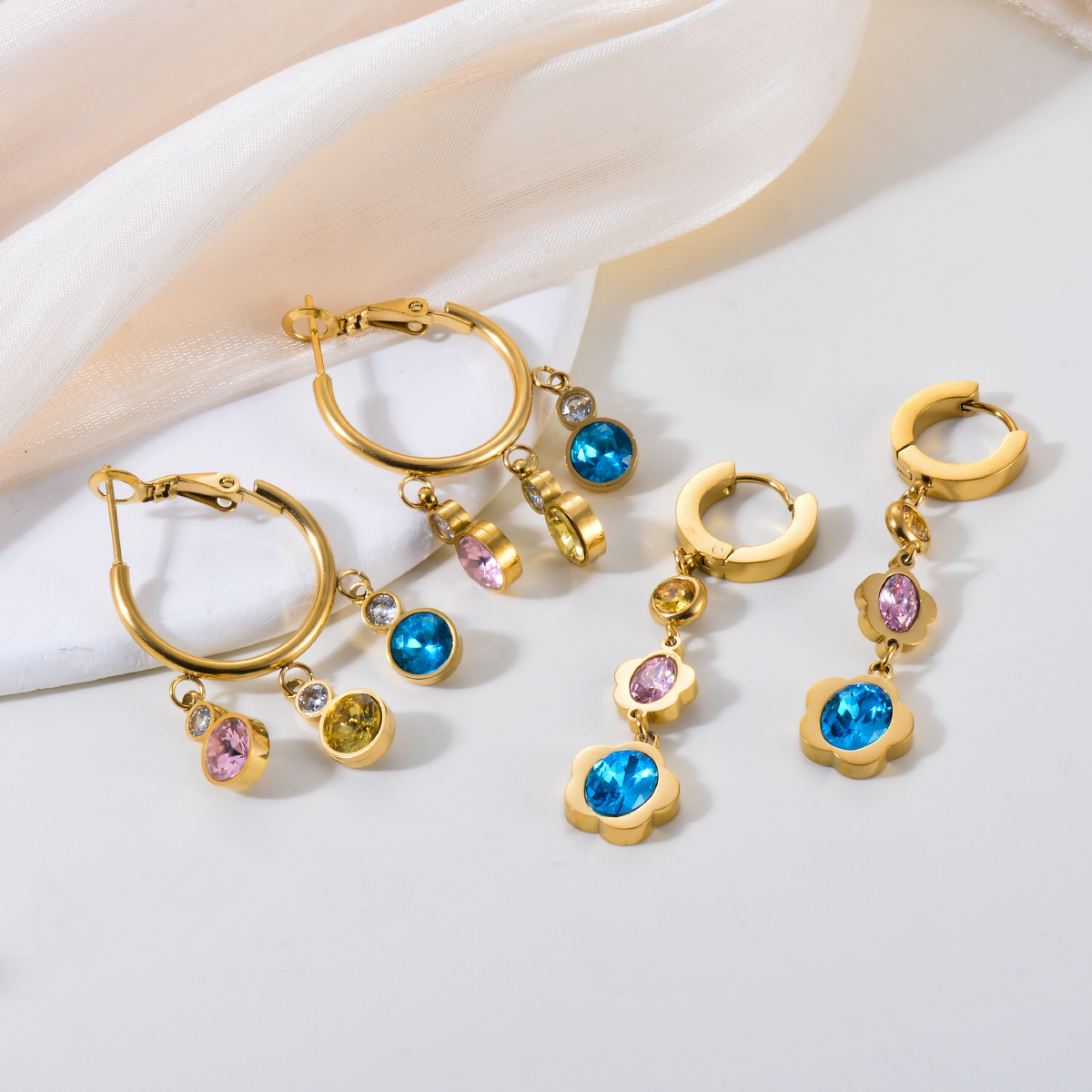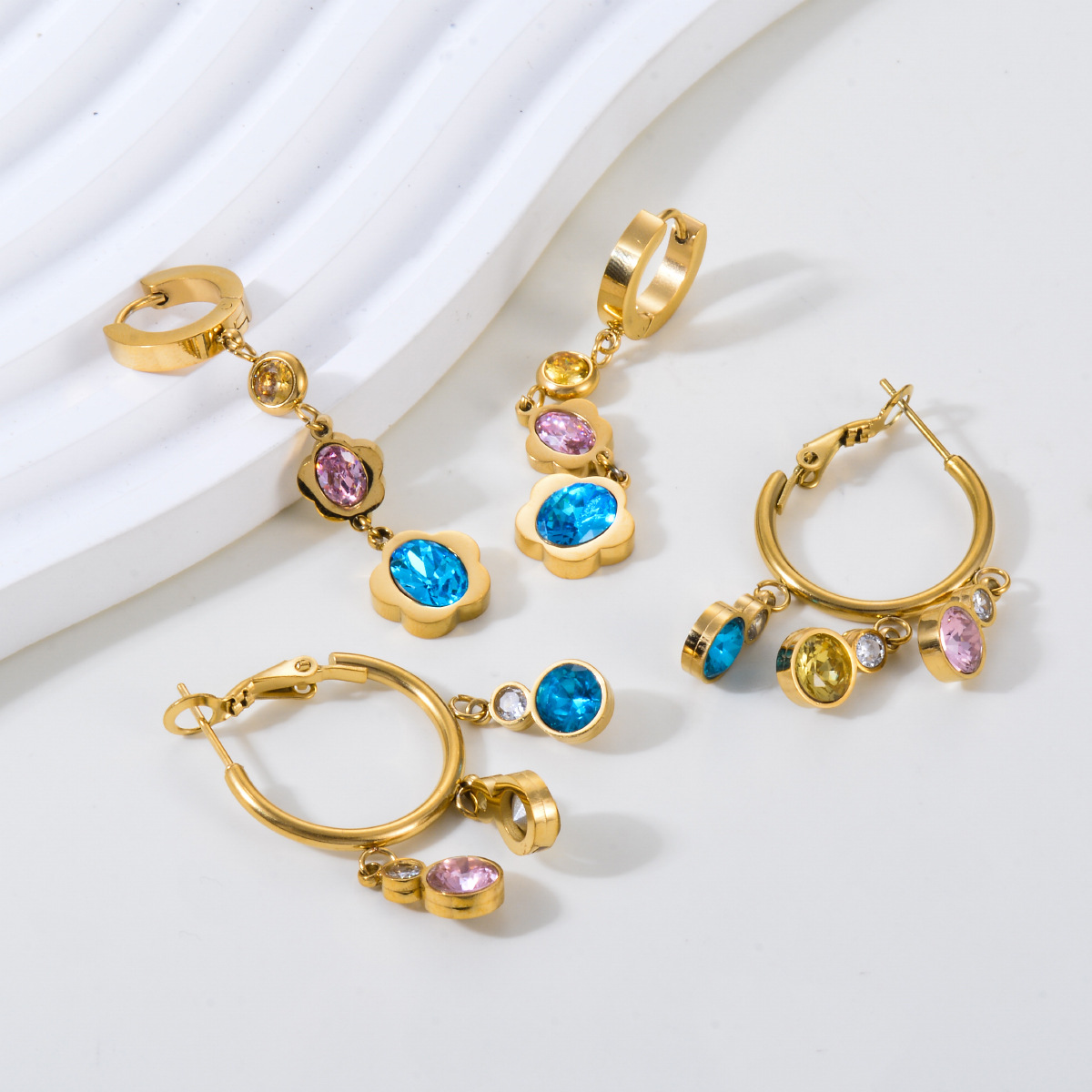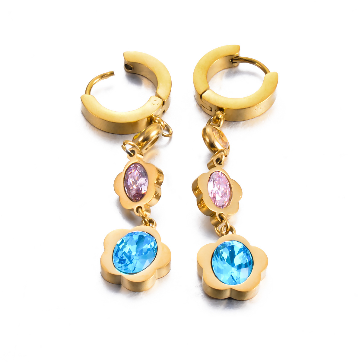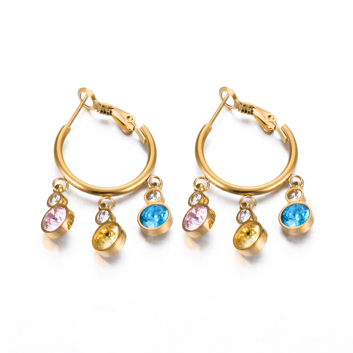 Boucle d'oreille goutte inox, Acier inoxydable 304, Placage de couleur d'or, styles différents pour le choix & pour femme & avec strass, plus de couleurs à choisir, Vendu par paire