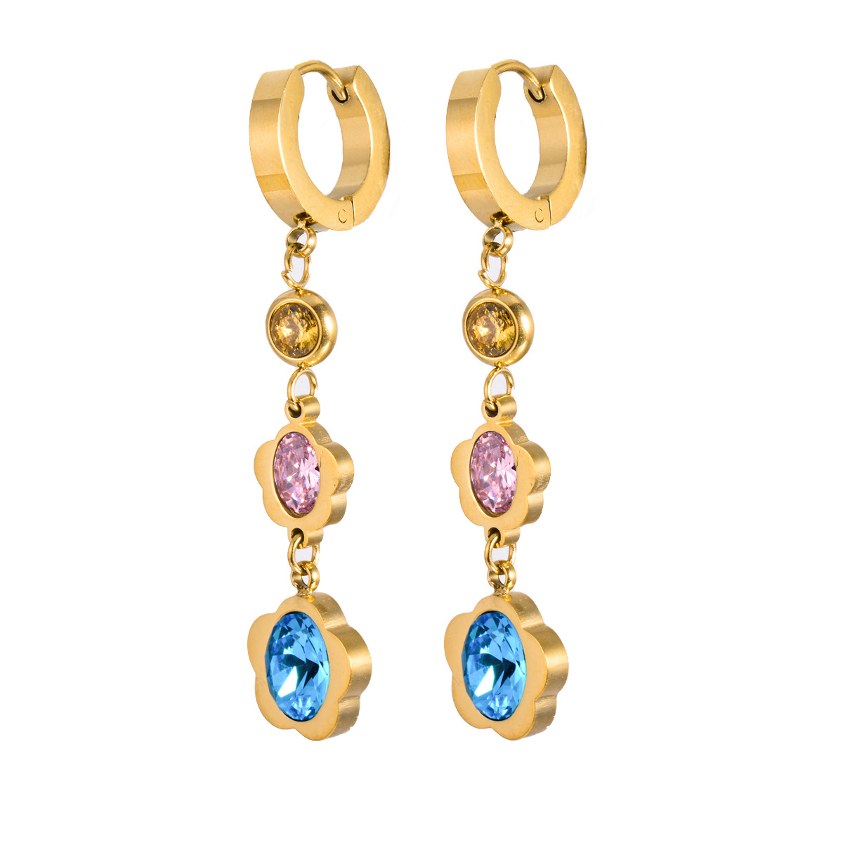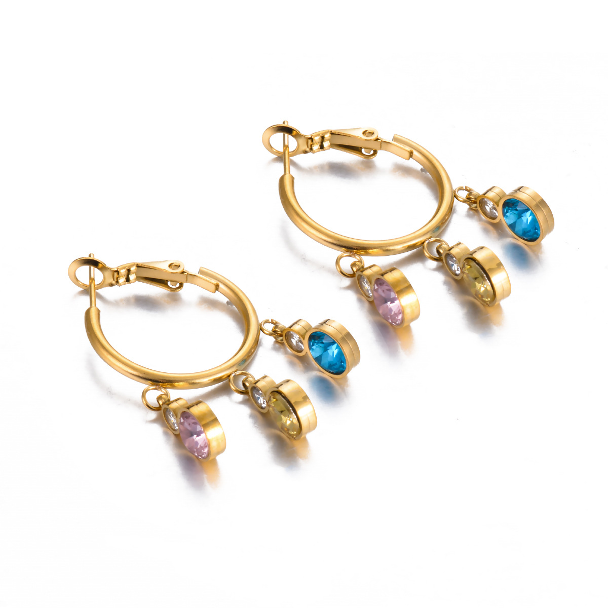 Boucle d'oreille goutte inox, acier inoxydable, avec strass, couleur originale  0.8mm, Vendu par paire