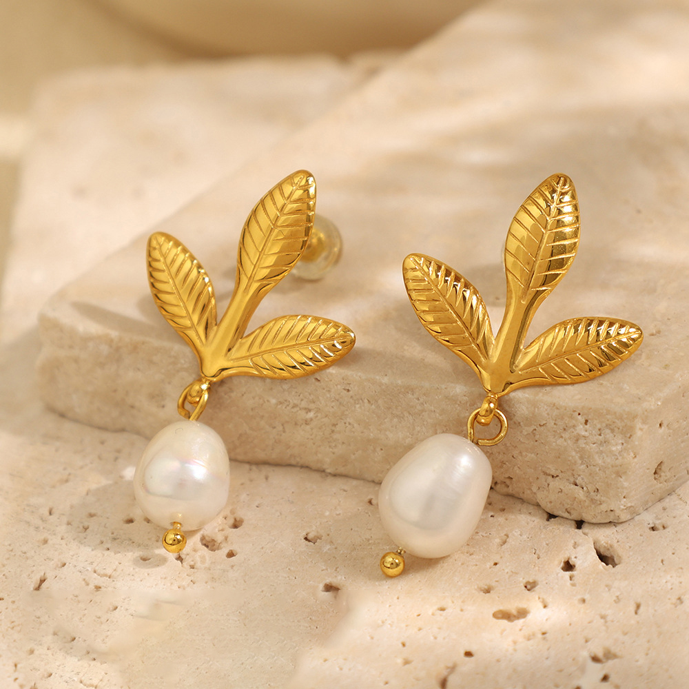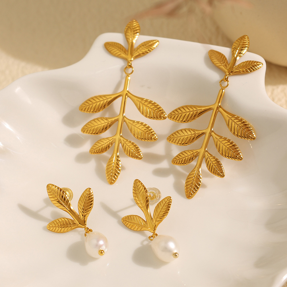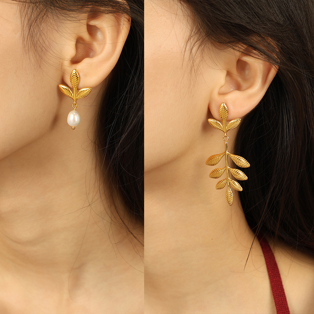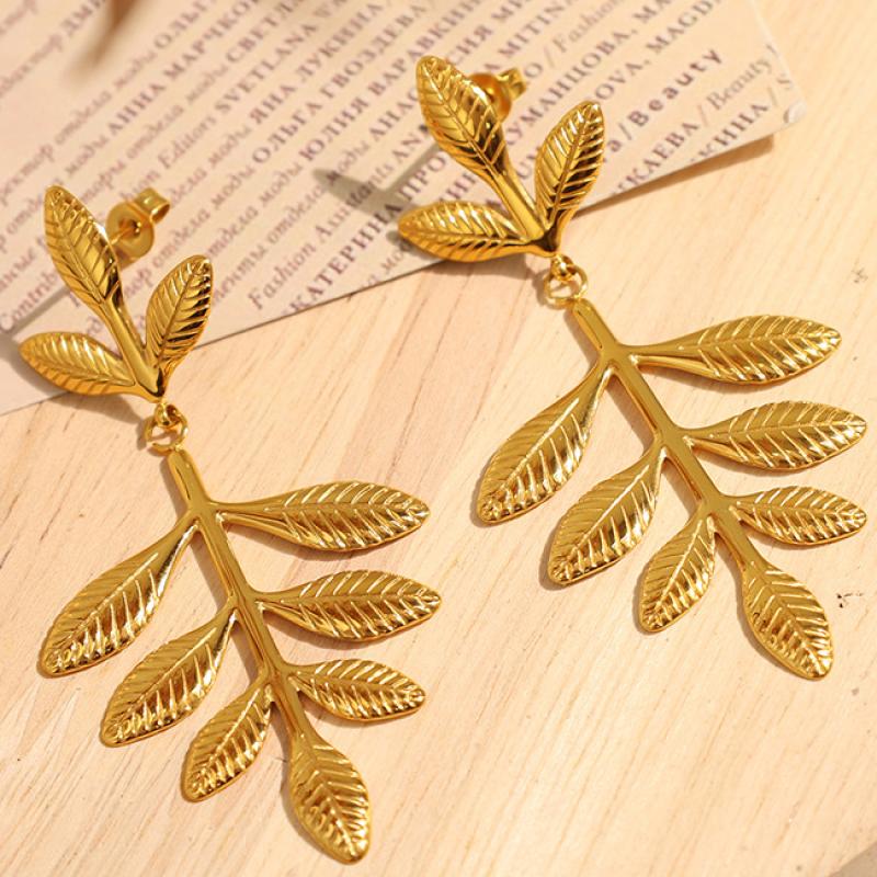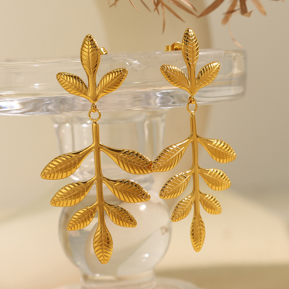Boucle d'oreille goutte inox, Acier inoxydable 304, feuille, Placage, bijoux de mode & styles différents pour le choix & pour femme, plus de couleurs à choisir, Vendu par paire