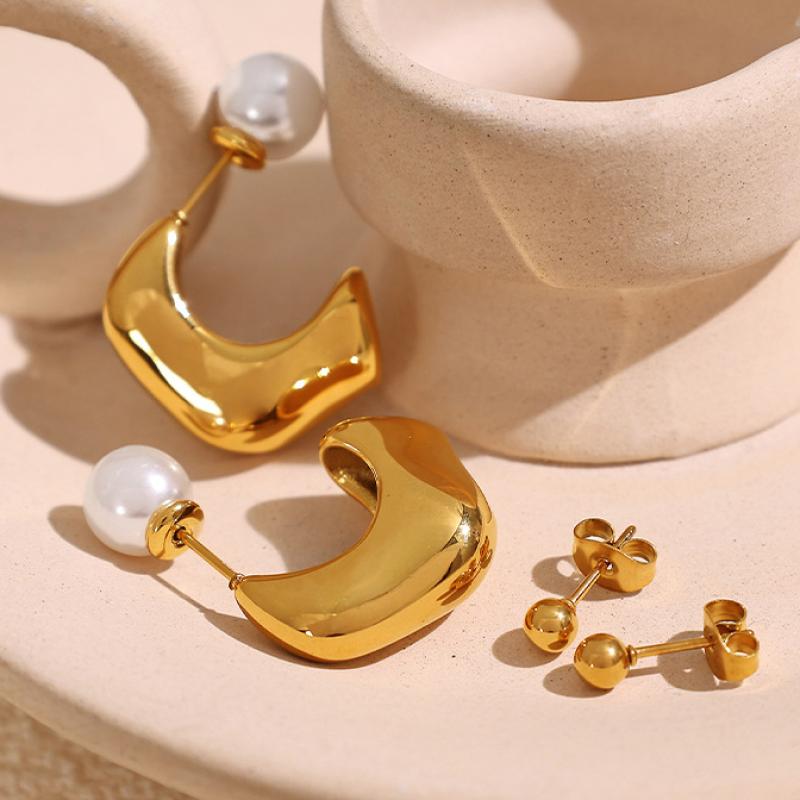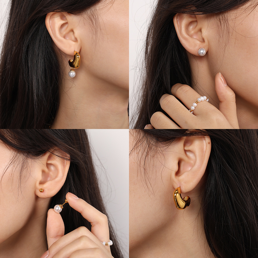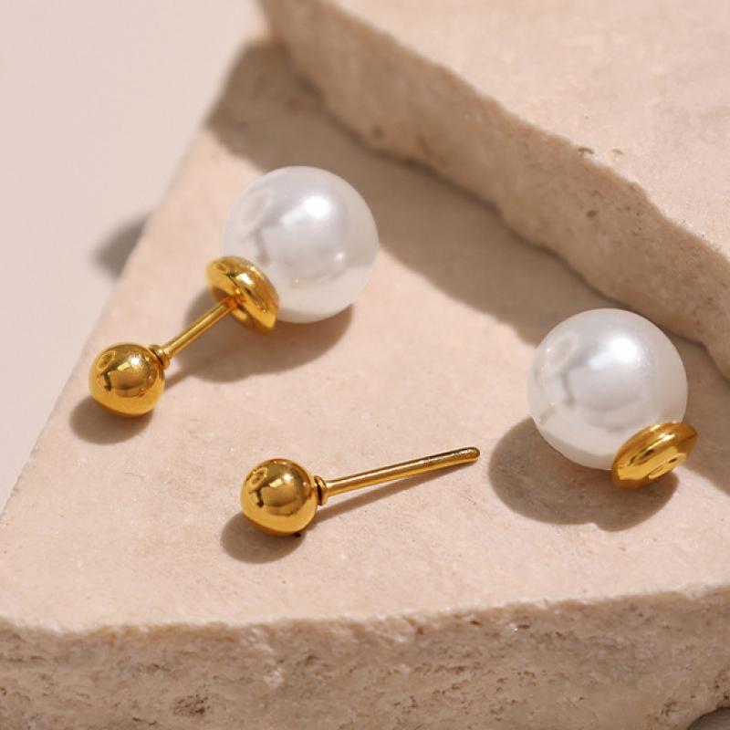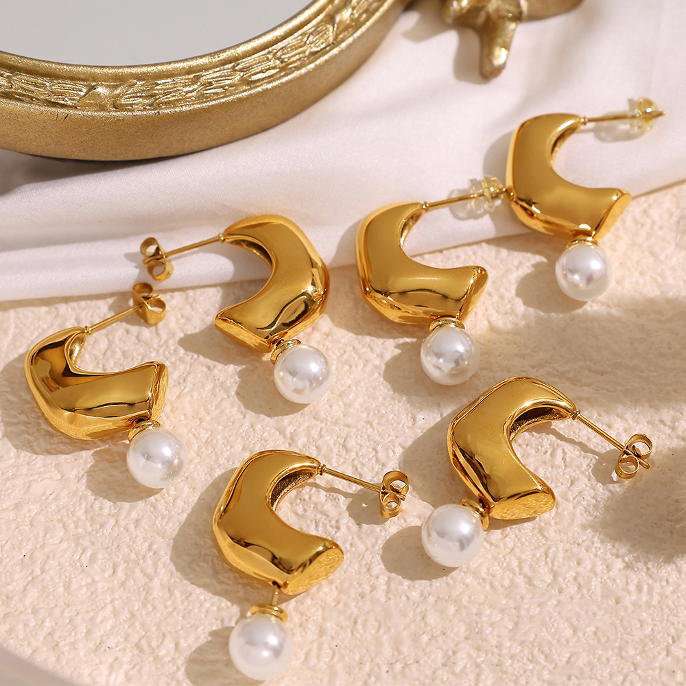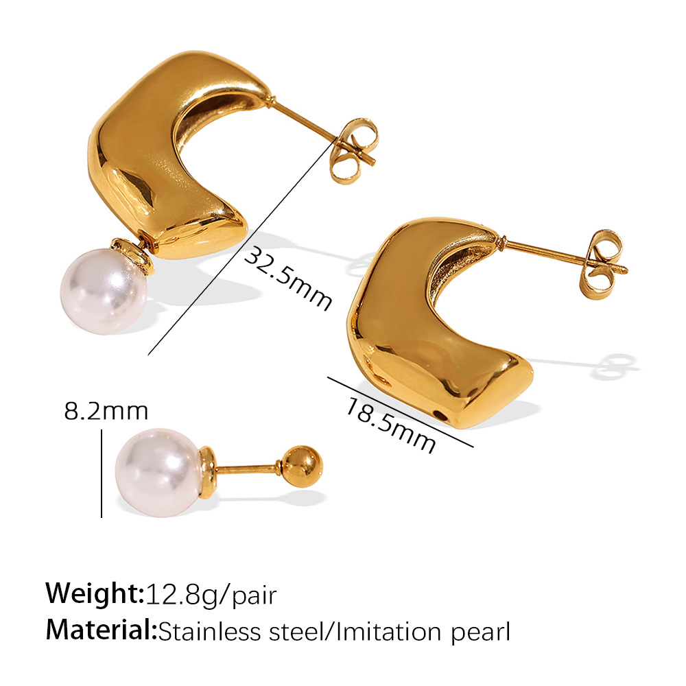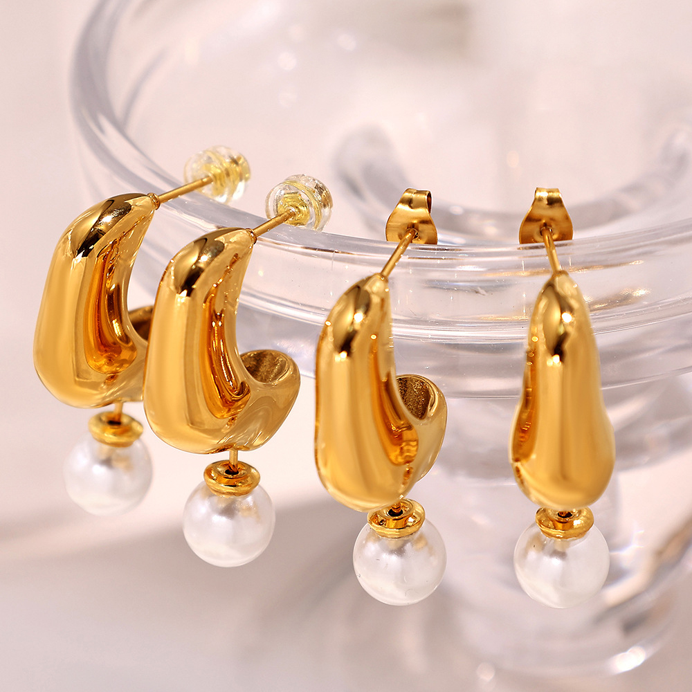 Boucle d'oreille goutte inox, Acier inoxydable 304, avec perle de plastique, Placage, bijoux de mode & pour femme, doré, Vendu par paire