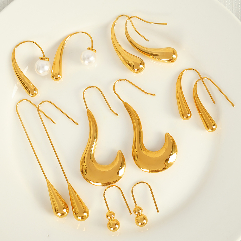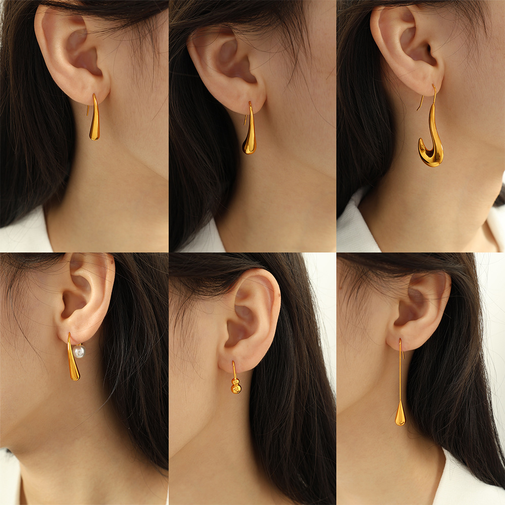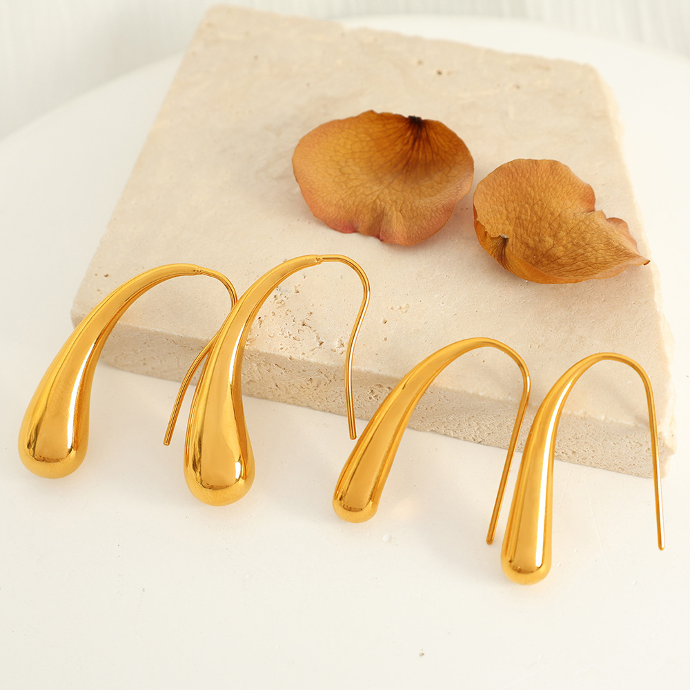 Boucle d'oreille goutte inox, Acier inoxydable 304, Plaqué or 18K, bijoux de mode & styles différents pour le choix & pour femme, Vendu par paire