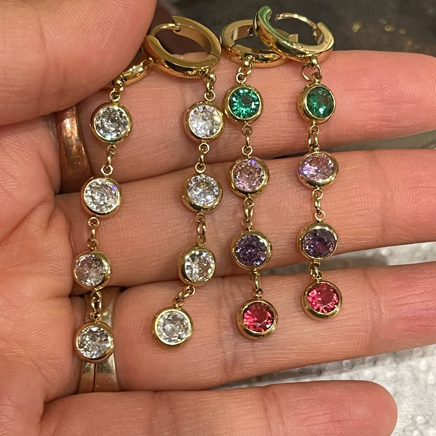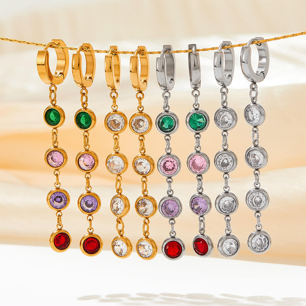 Boucle d'oreille goutte inox, acier inoxydable, acier inoxydable boucle d'oreille crochet, rectangle, pour femme & avec strass, plus de couleurs à choisir Environ 2.6 pouce, Vendu par paire