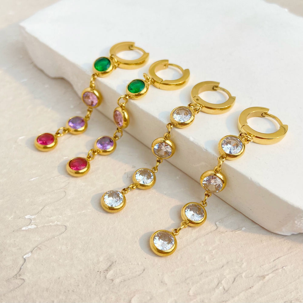 Boucle d'oreille goutte inox, acier inoxydable, avec strass, couleur originale  0.8mm, Vendu par paire