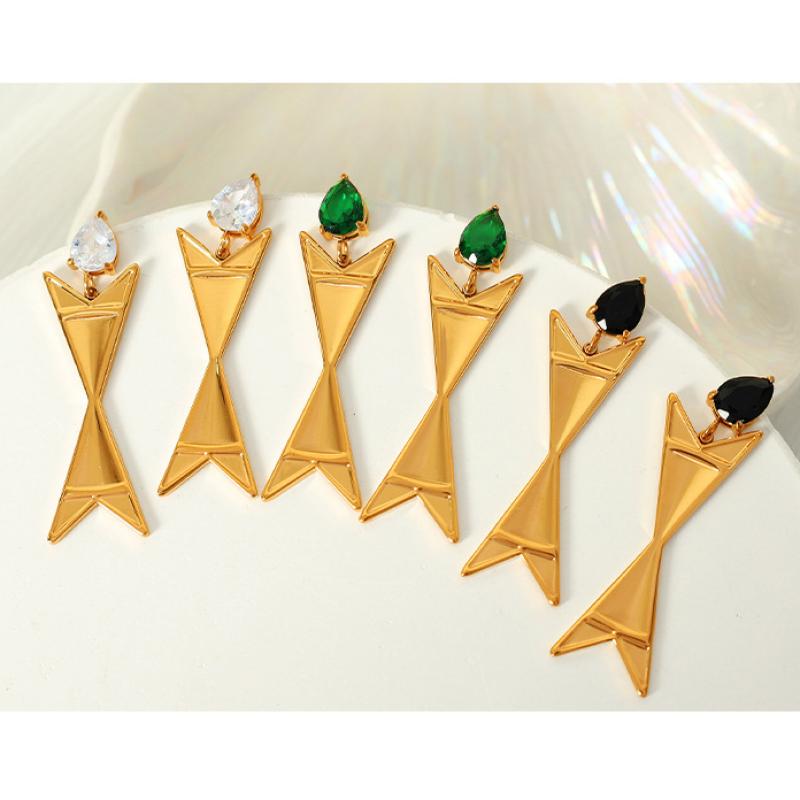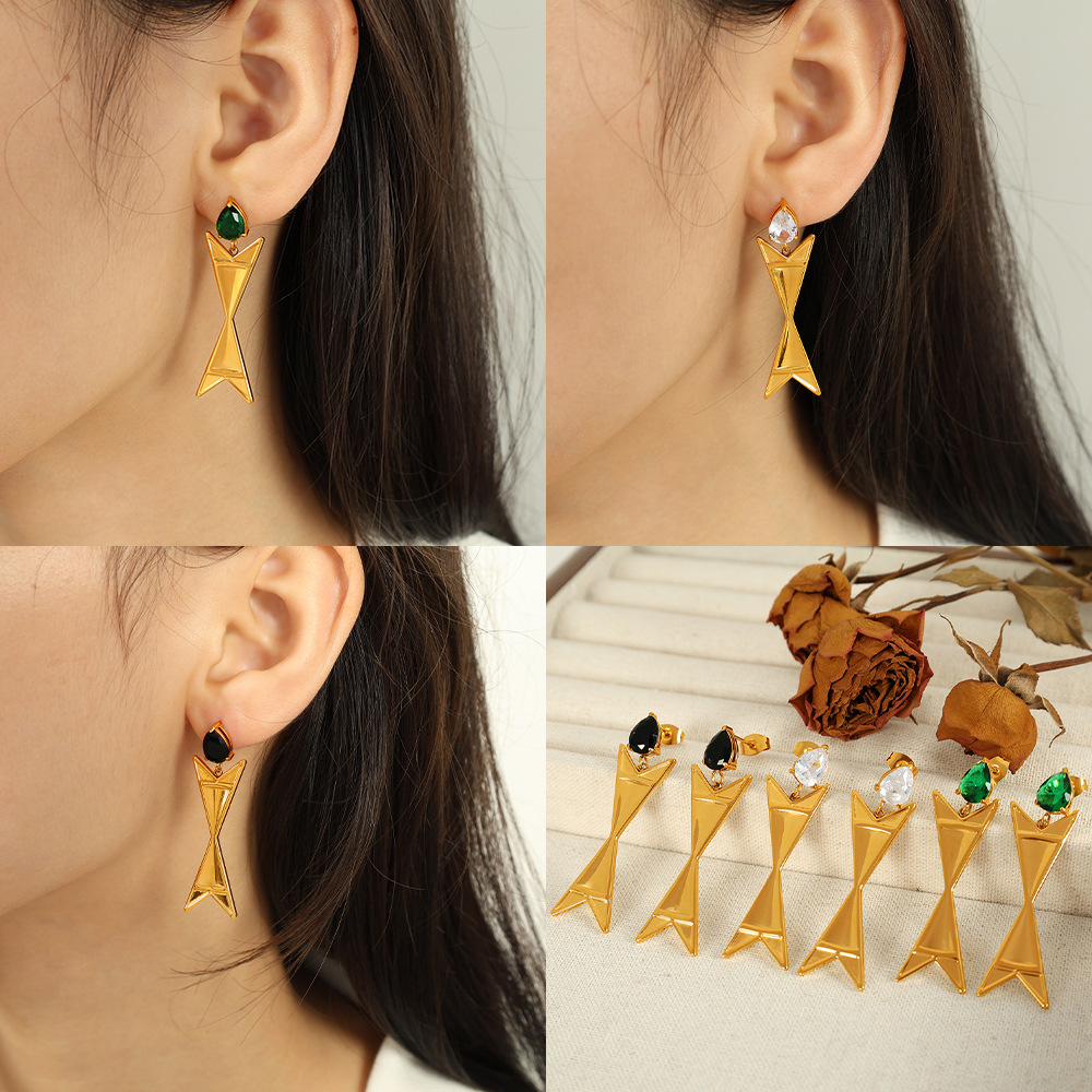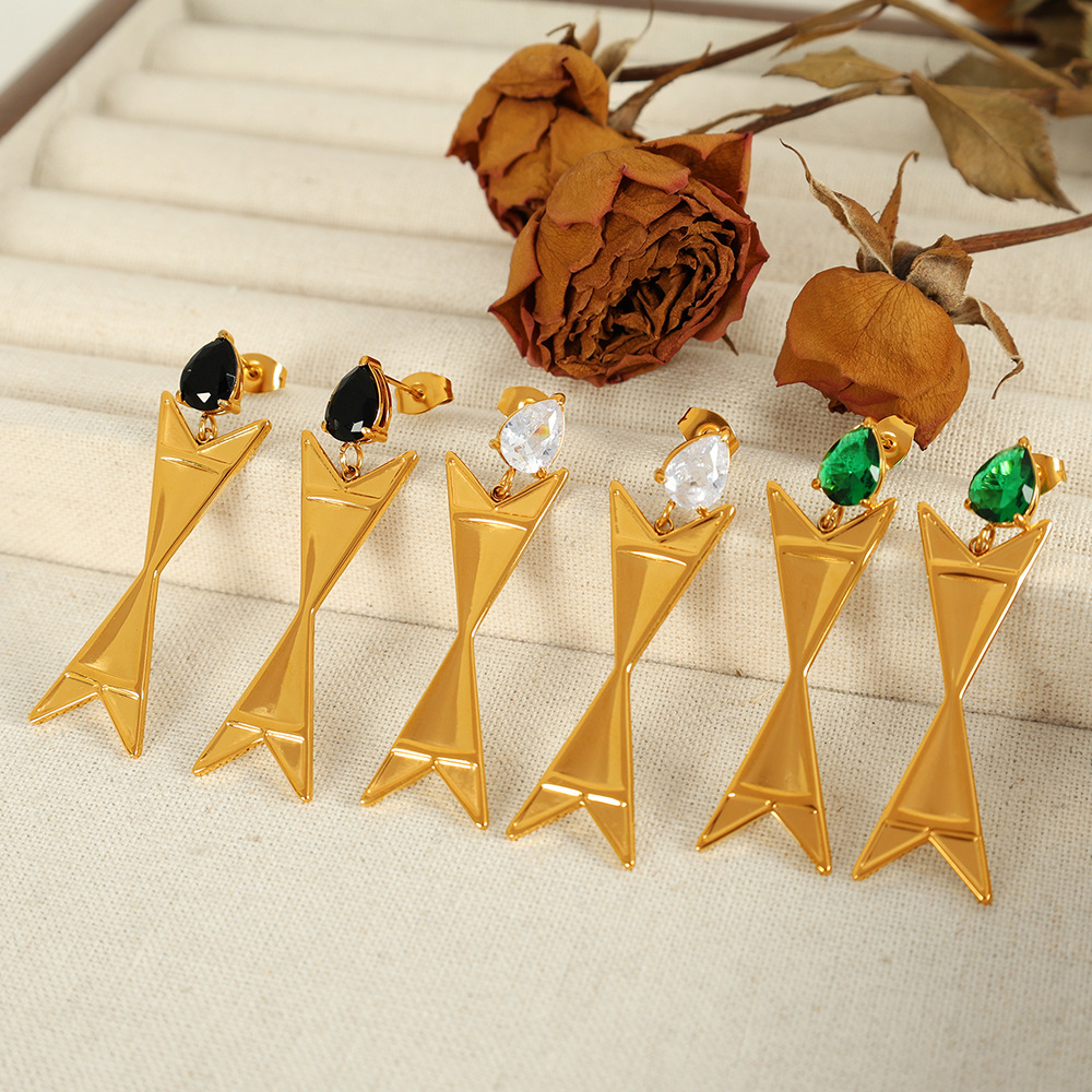 Boucle d'oreille goutte inox, Acier inoxydable 304, avec zircon cubique, Placage de couleur d'or, bijoux de mode & pour femme, plus de couleurs à choisir, Vendu par paire