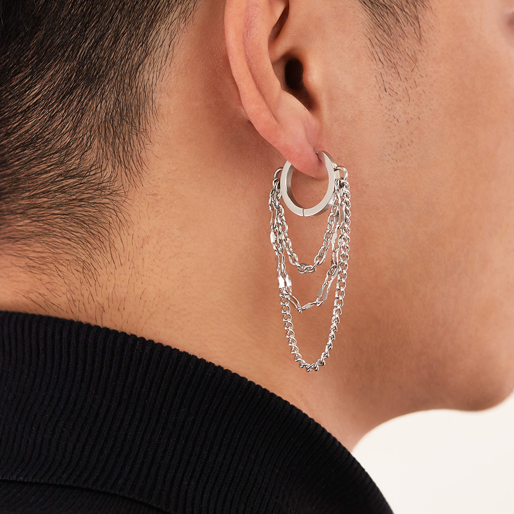 Boucle d'oreille goutte inox, Acier inoxydable 304, poli, trois couches & bijoux de mode & pour homme, couleur originale, Vendu par paire