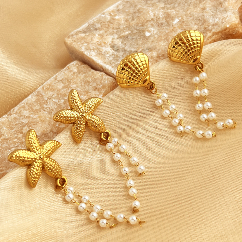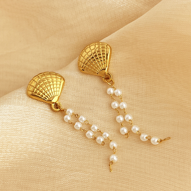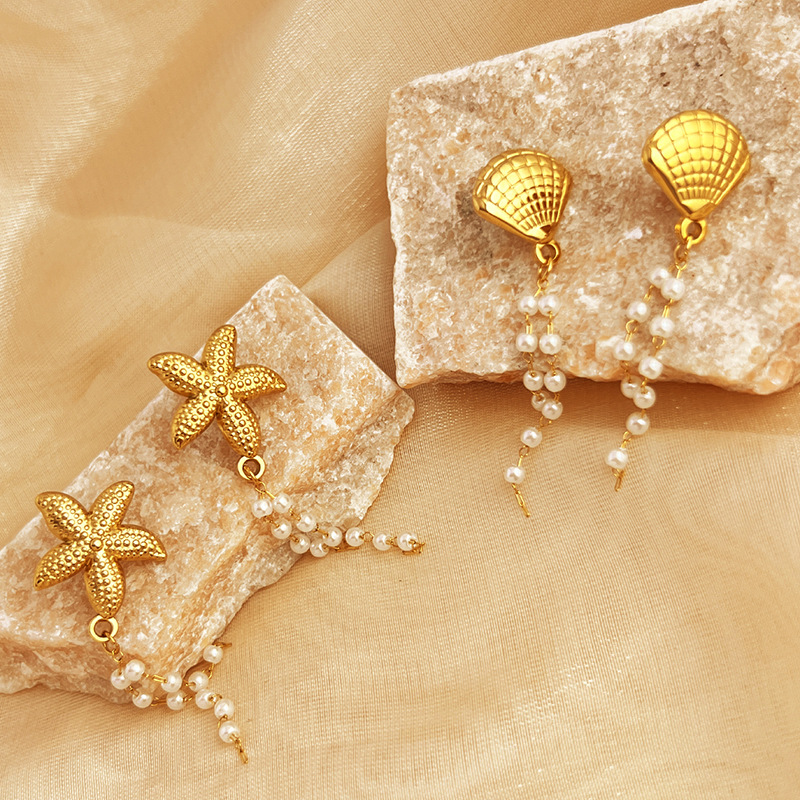 Boucle d'oreille goutte inox, Acier inoxydable 304, avec perle de plastique, Plaqué or 18K, bijoux de mode & styles différents pour le choix & pour femme, Vendu par paire