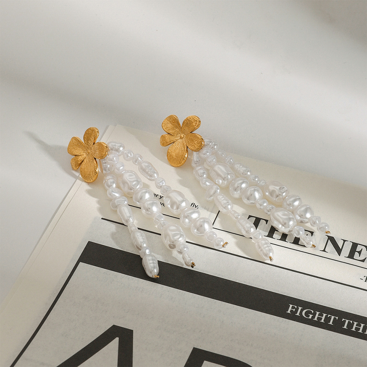Boucle d'oreille goutte inox, Acier inoxydable 304, avec perle de plastique, Placage, bijoux de mode & styles différents pour le choix & pour femme, Vendu par paire