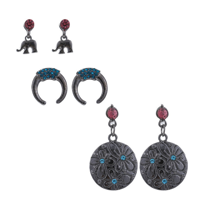 Boucle d'oreille goutte inox, Acier inoxydable 304, Placage ionique sous vide, pour femme & avec strass, 3pairescouple/fixé, Vendu par fixé