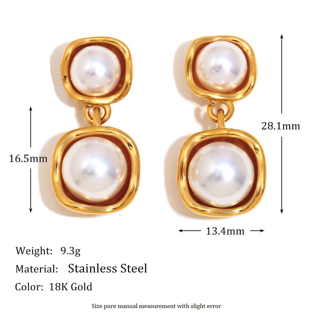 Boucle d'oreille goutte inox, Acier inoxydable 304, avec perle de plastique, Placage ionique sous vide, bijoux de mode & pour femme, plus de couleurs à choisir, 13.4x28.1mm, Vendu par paire