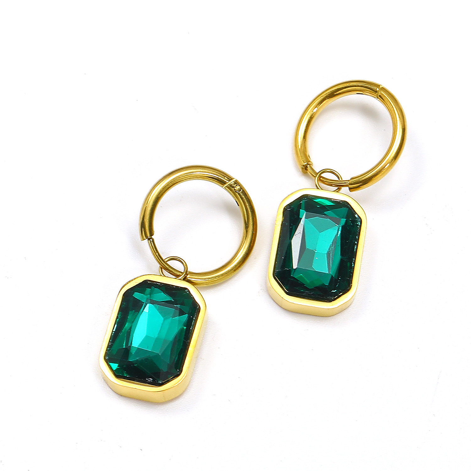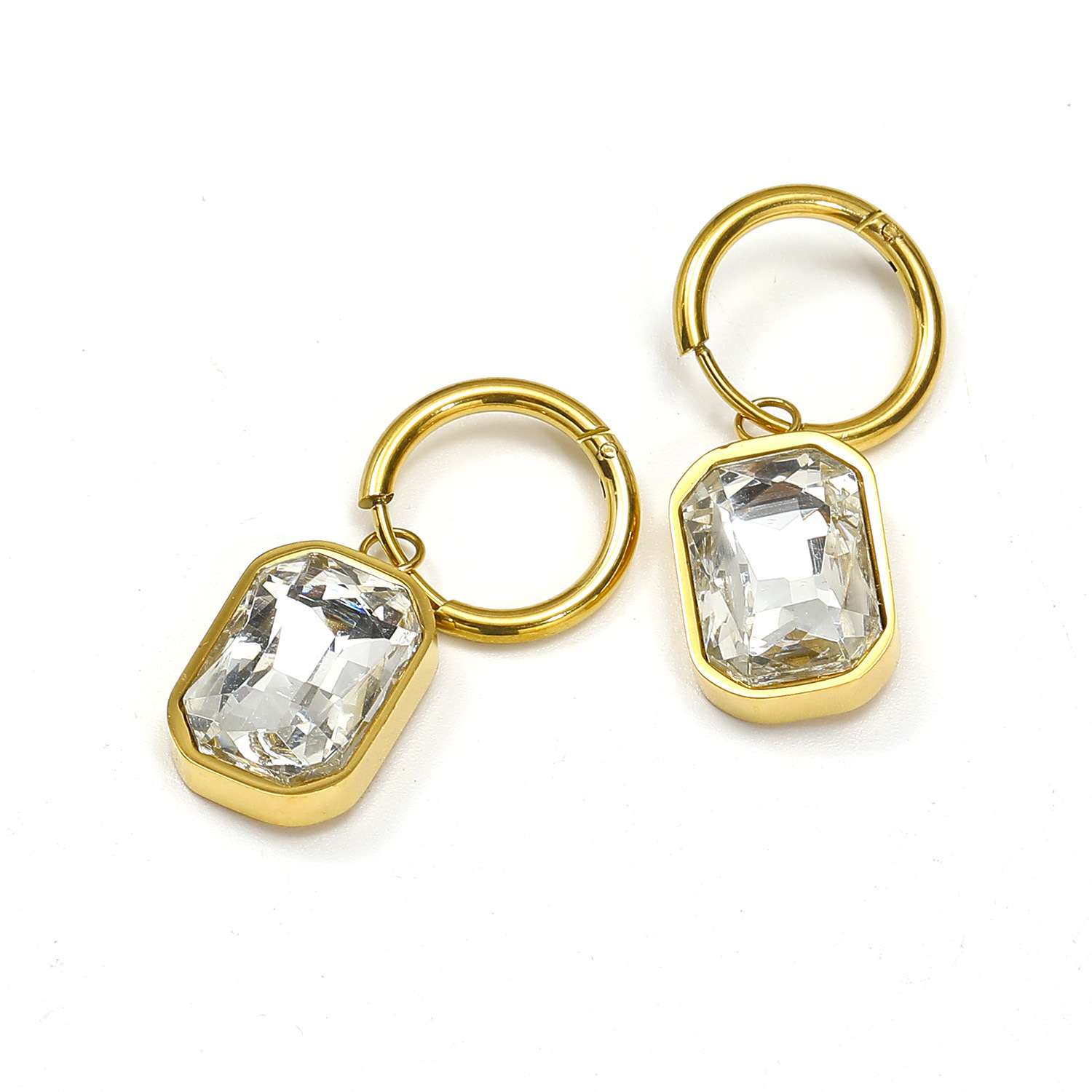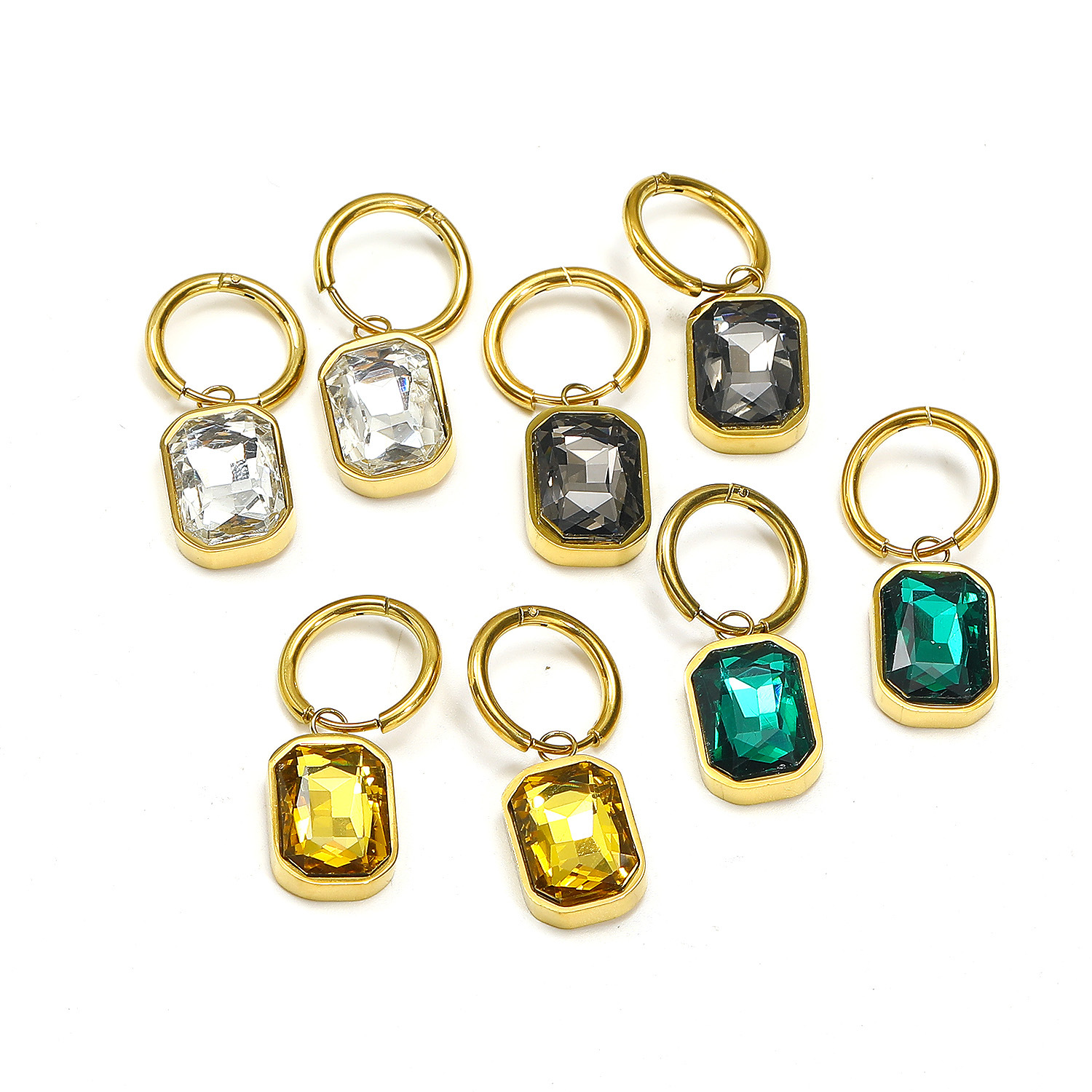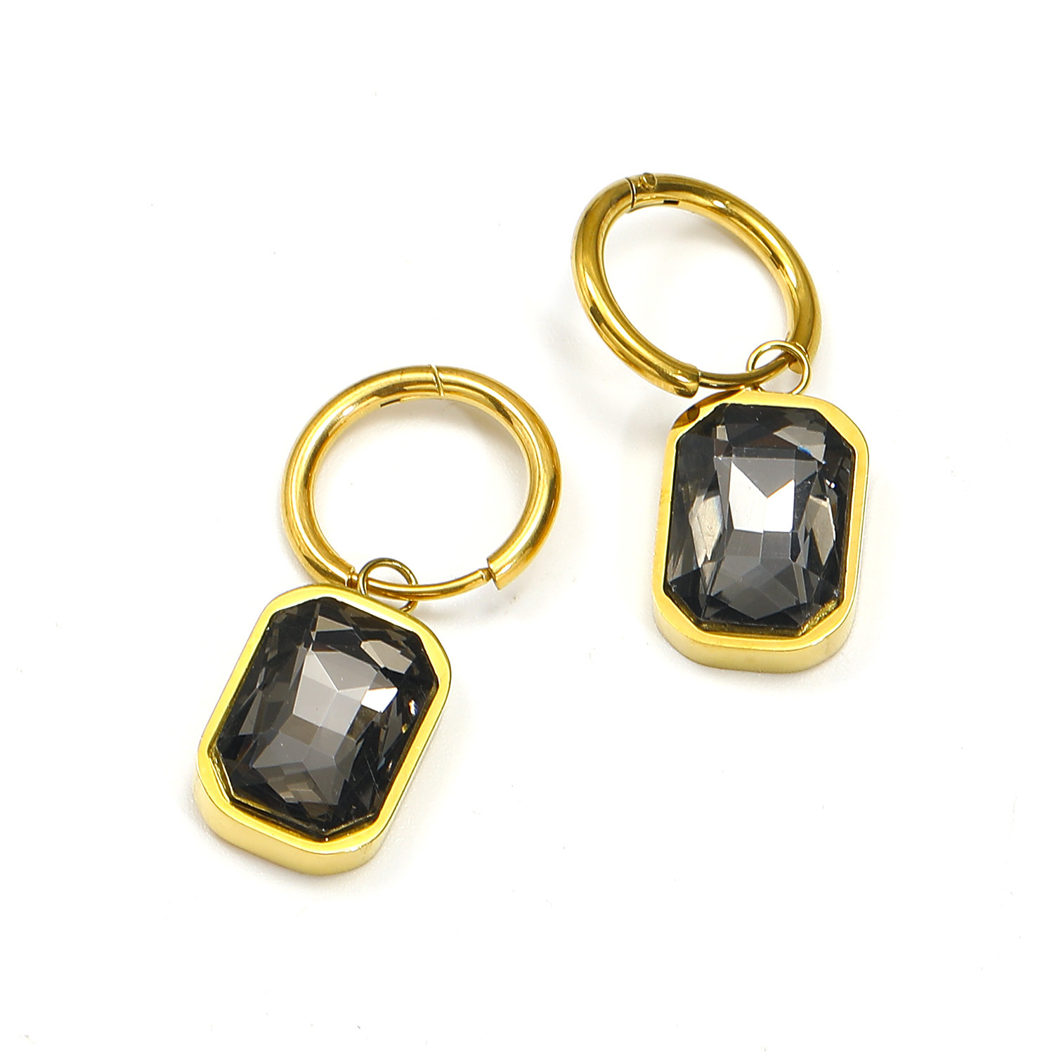 Boucle d'oreille goutte inox, acier inoxydable, acier inoxydable boucle d'oreille crochet, rectangle, pour femme & avec strass, plus de couleurs à choisir Environ 2.6 pouce, Vendu par paire
