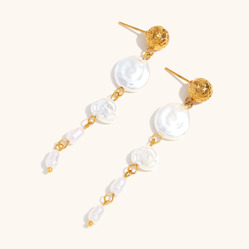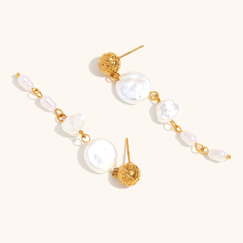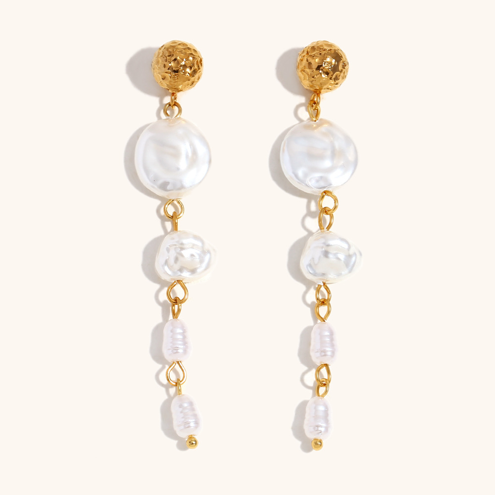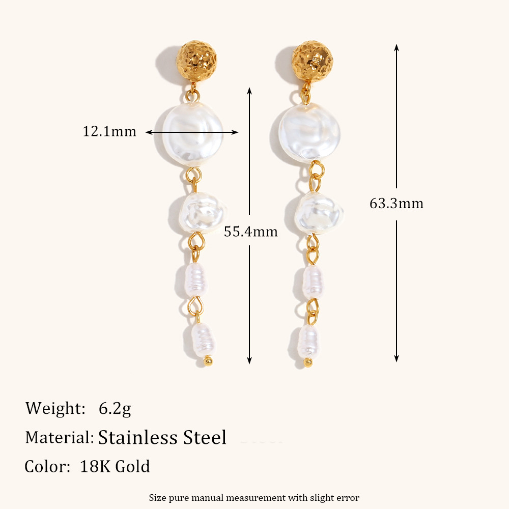 Boucle d'oreille goutte inox, Acier inoxydable 304, avec perle de plastique, Placage de couleur d'or, pour femme, Vendu par paire