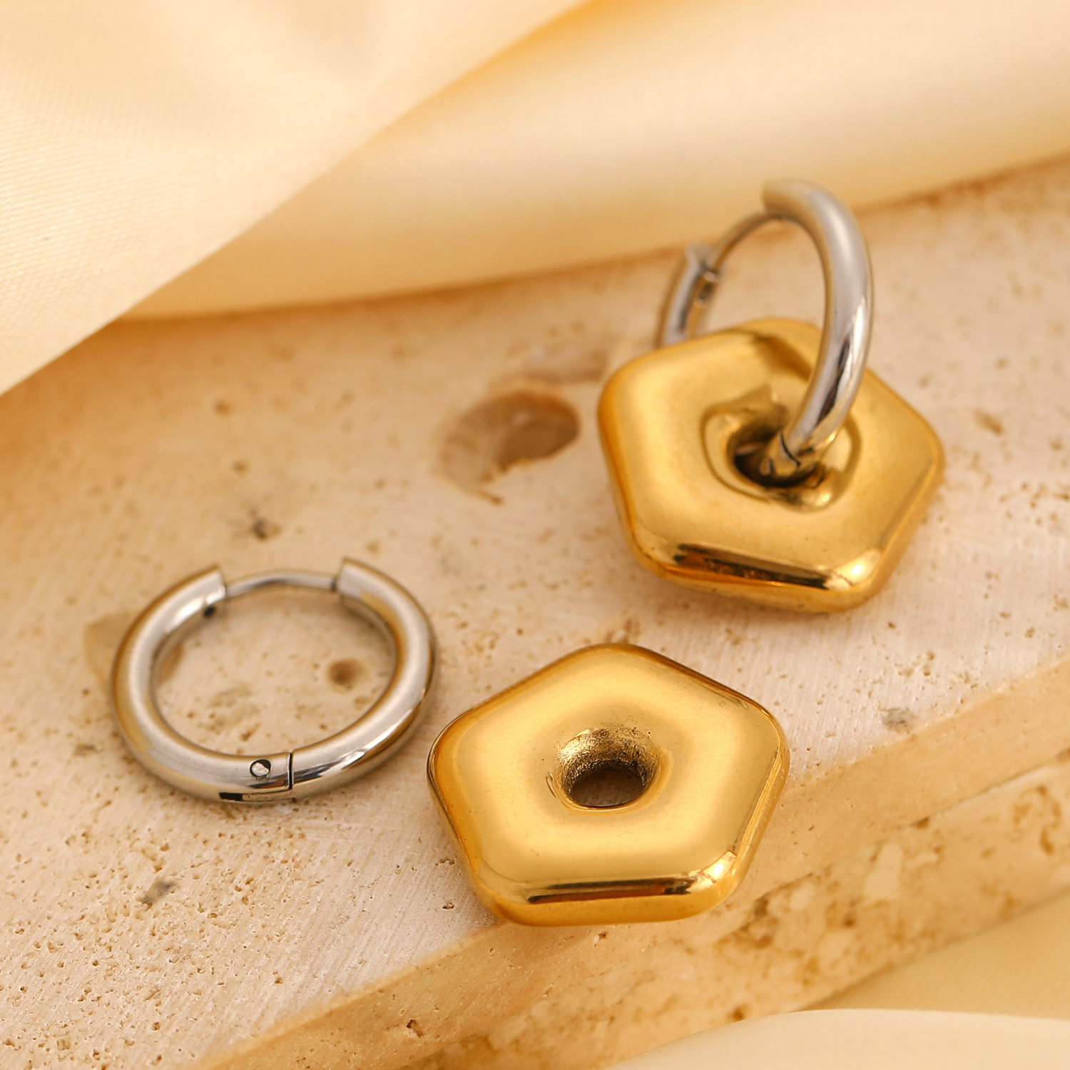 Boucle d'oreille goutte inox, Acier inoxydable 304, pentagone, Placage, pour femme, plus de couleurs à choisir, 16x23mm, Vendu par paire
