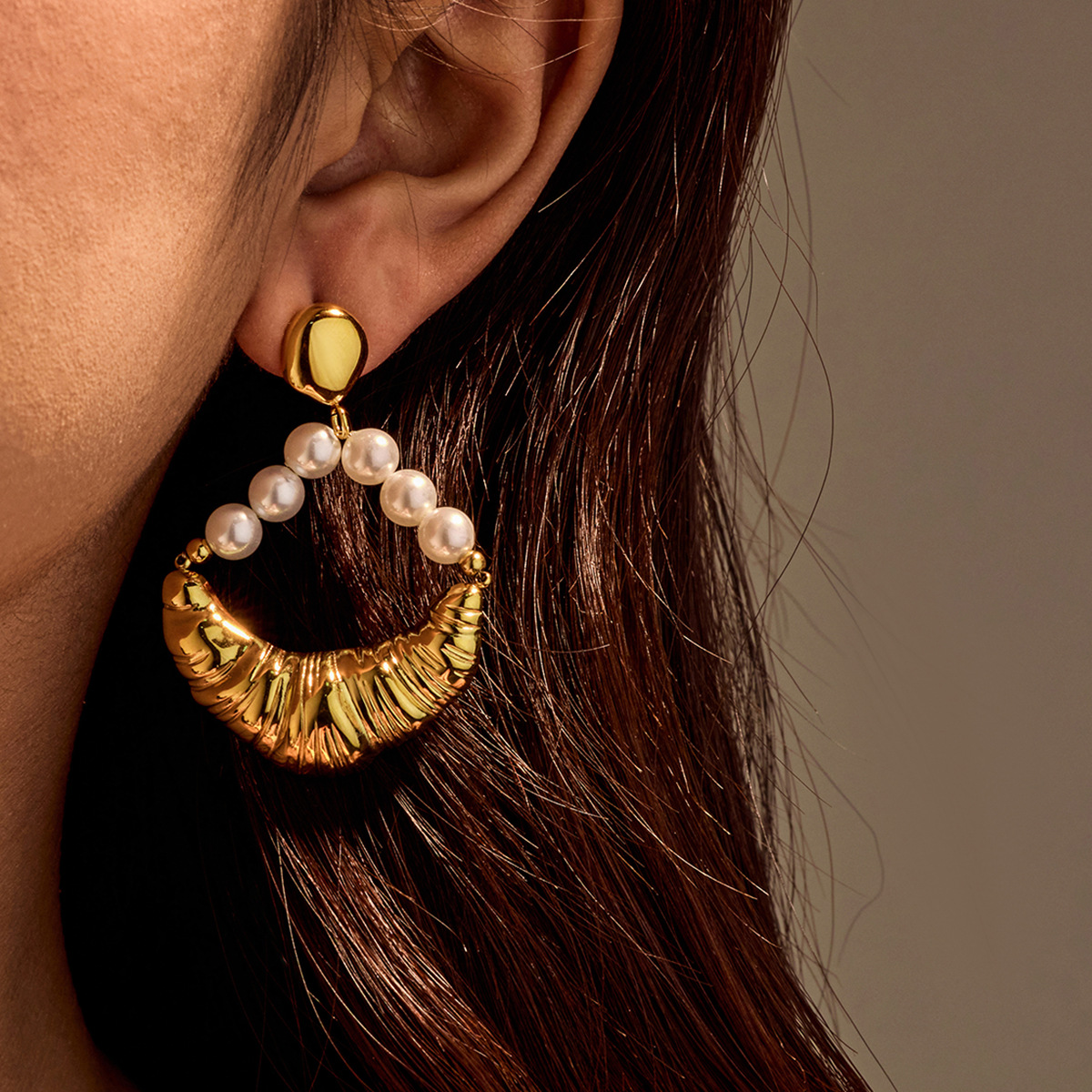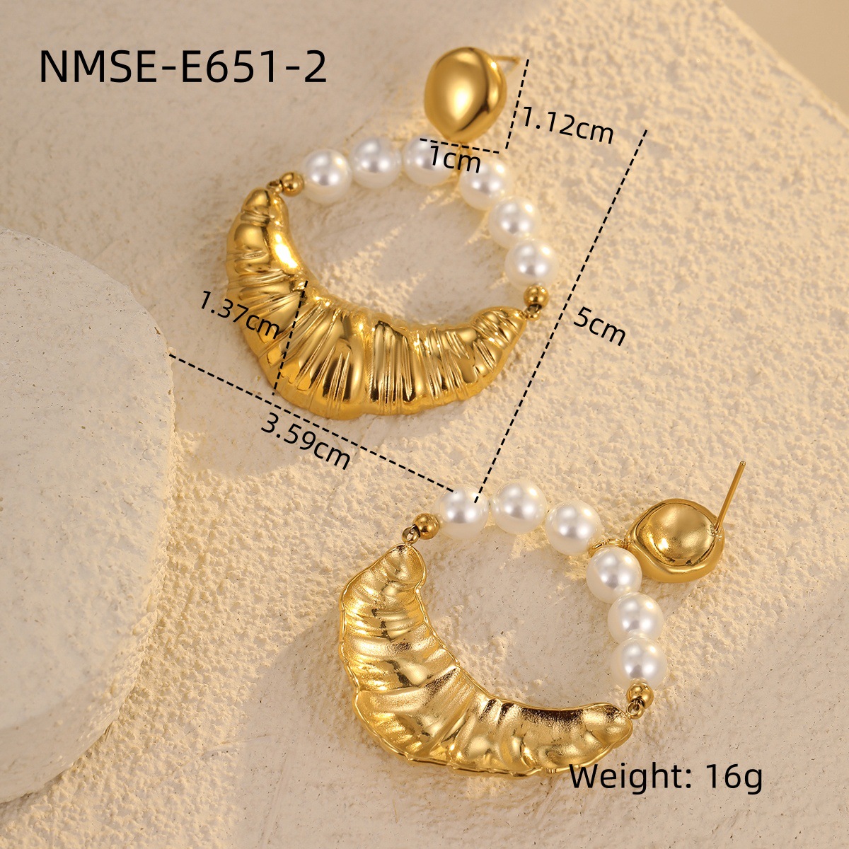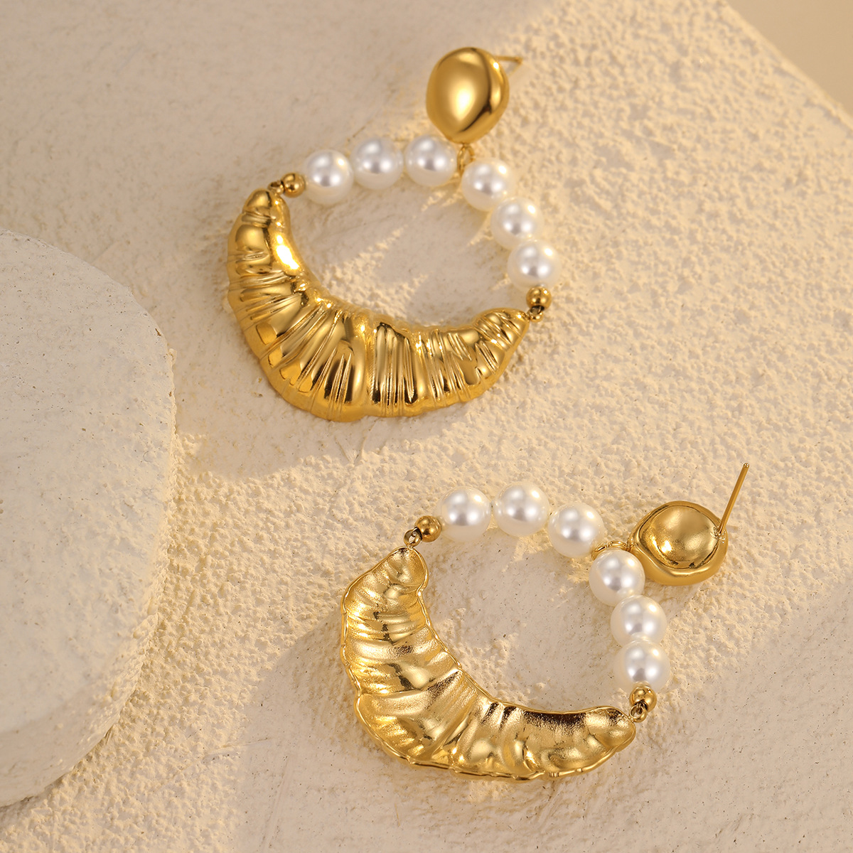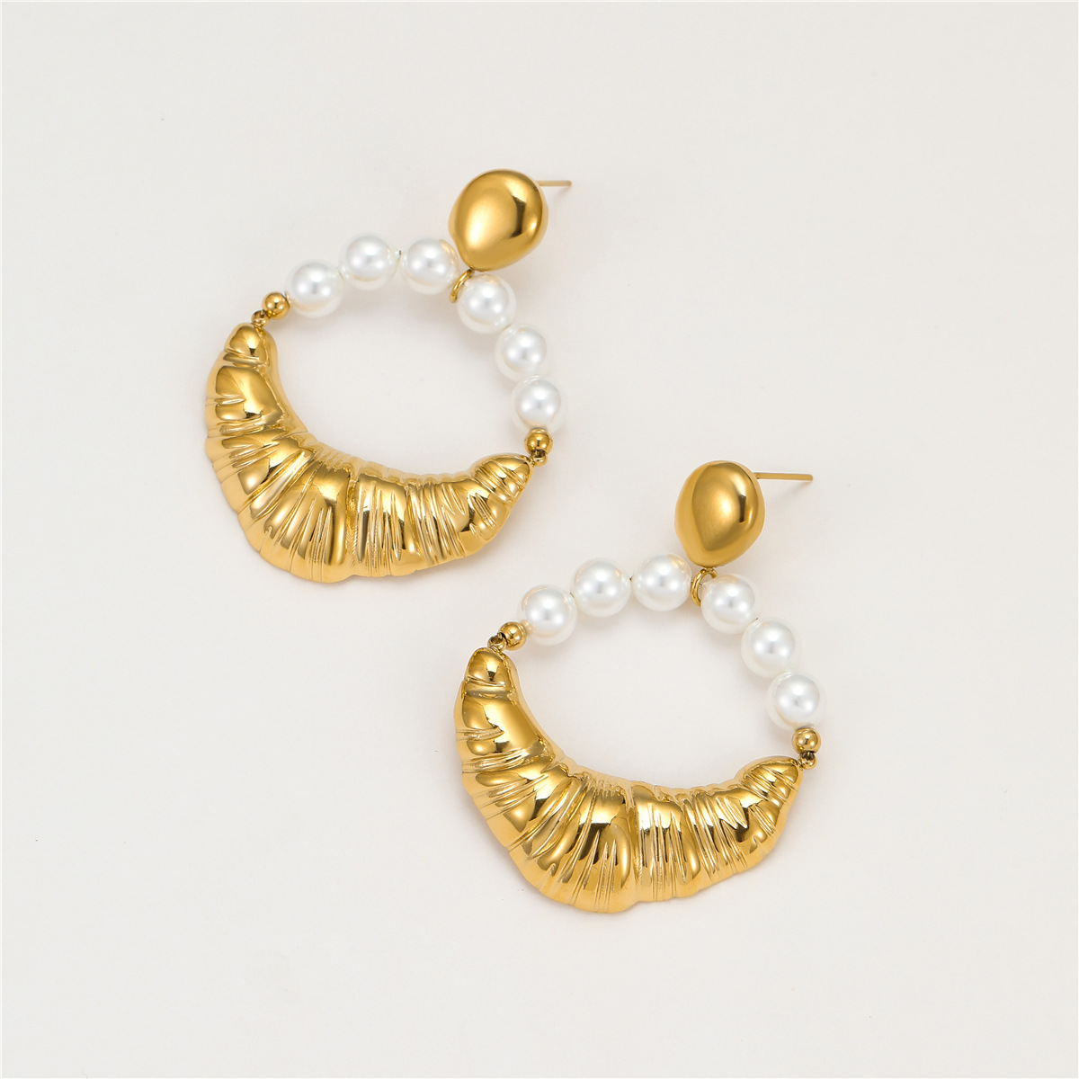 Boucle d'oreille goutte inox, Acier inoxydable 304, avec Shell Pearl, Placage, bijoux de mode & pour femme & creux, doré, Vendu par paire