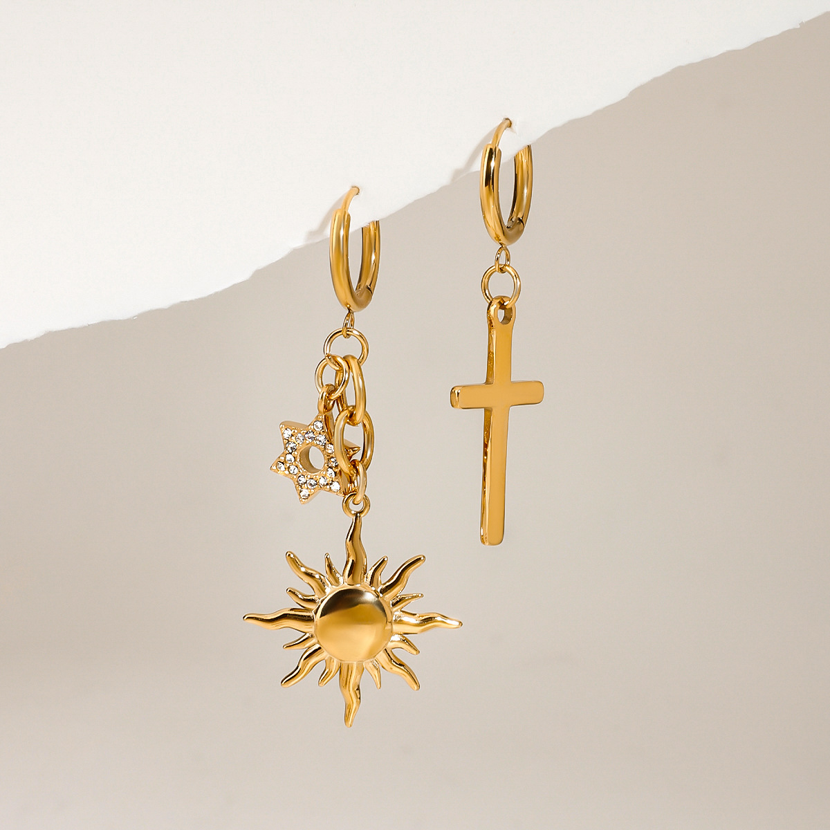 Acier titane Boucle d'oreille goutte, acier inoxydable puce boucle d'oreille, croix, Placage, unisexe, plus de couleurs à choisir, 6mm, Vendu par PC