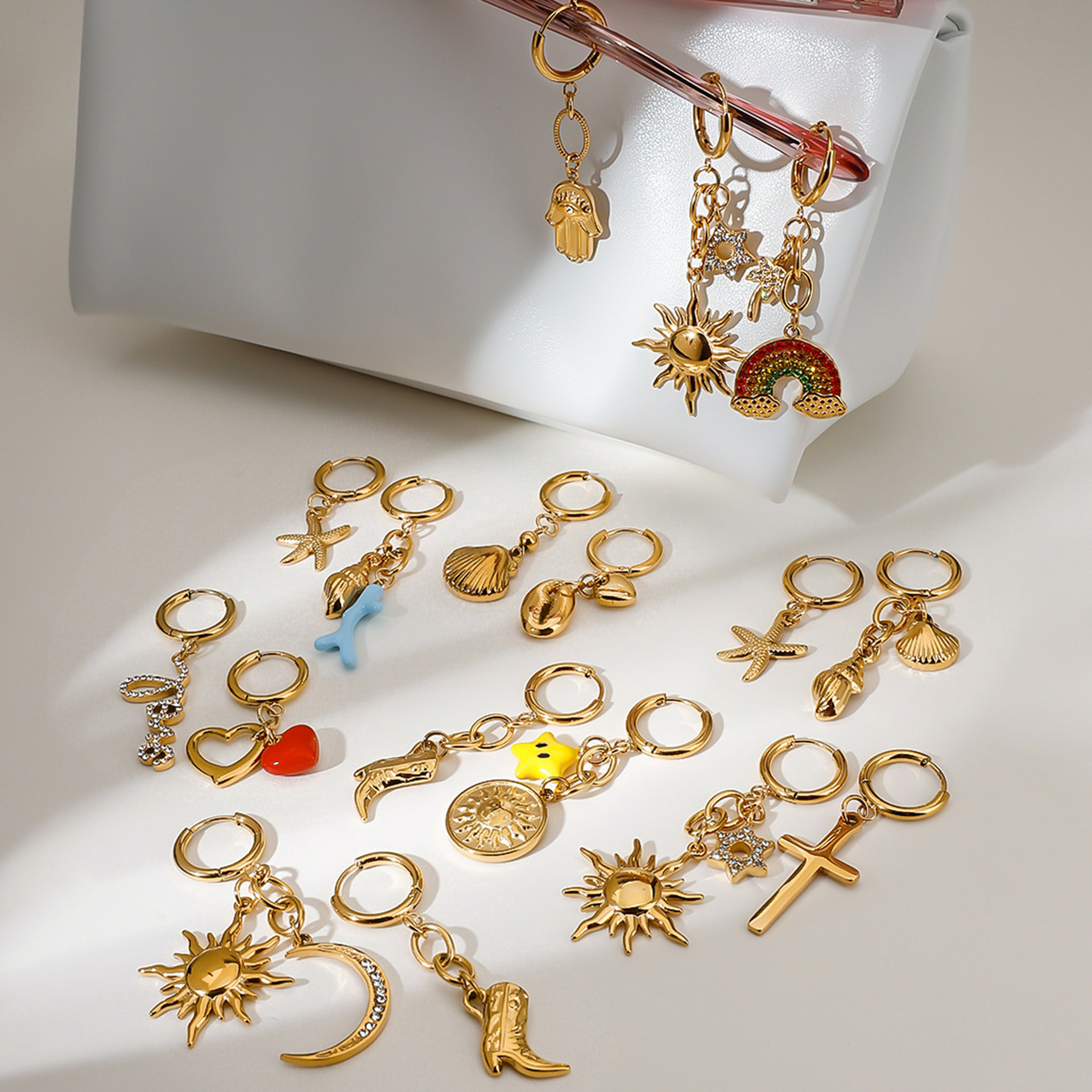 Boucle d'oreille goutte inox, Acier inoxydable 304, Placage, styles différents pour le choix & pour femme & avec strass, doré, Vendu par paire