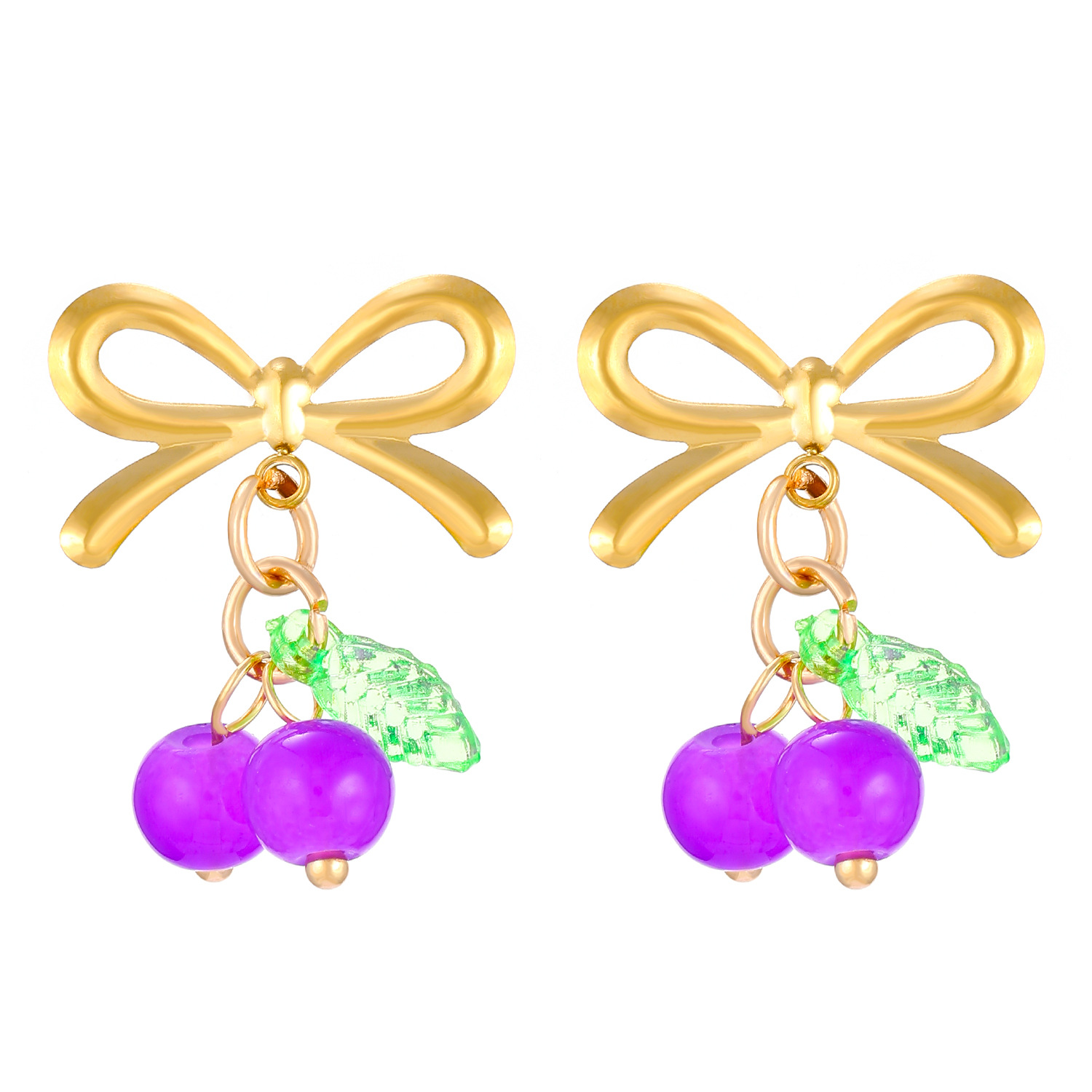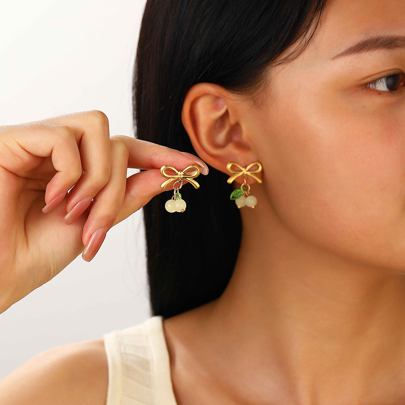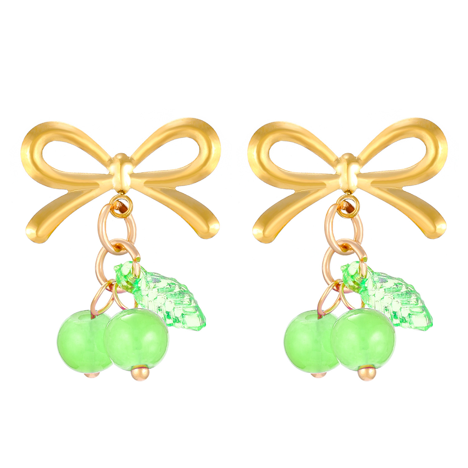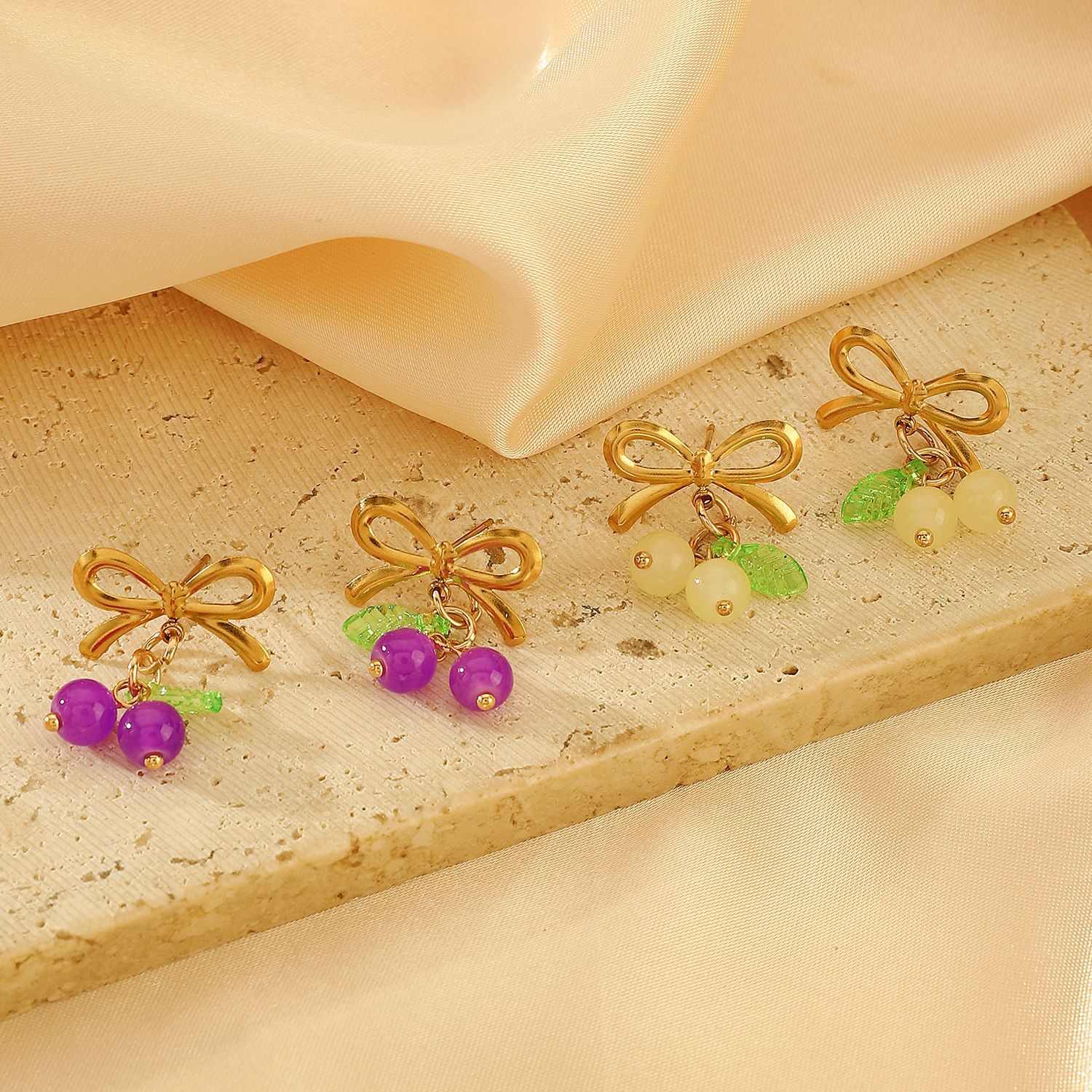 Boucle d'oreille goutte inox, Acier inoxydable 304, avec Des billes de verre, Noeud papillon, Placage ionique sous vide, bijoux de mode & pour femme, plus de couleurs à choisir, 20x25mm, Vendu par paire