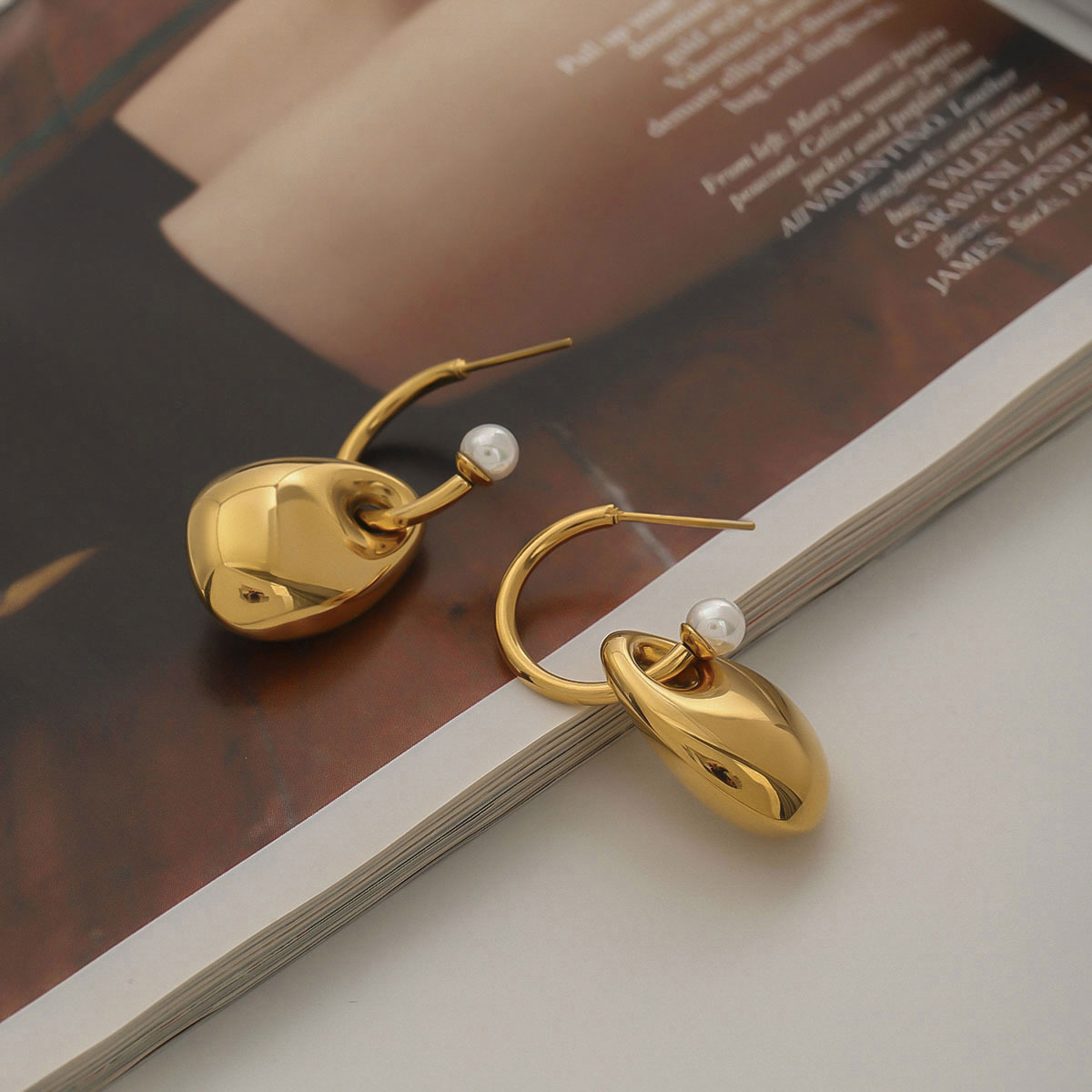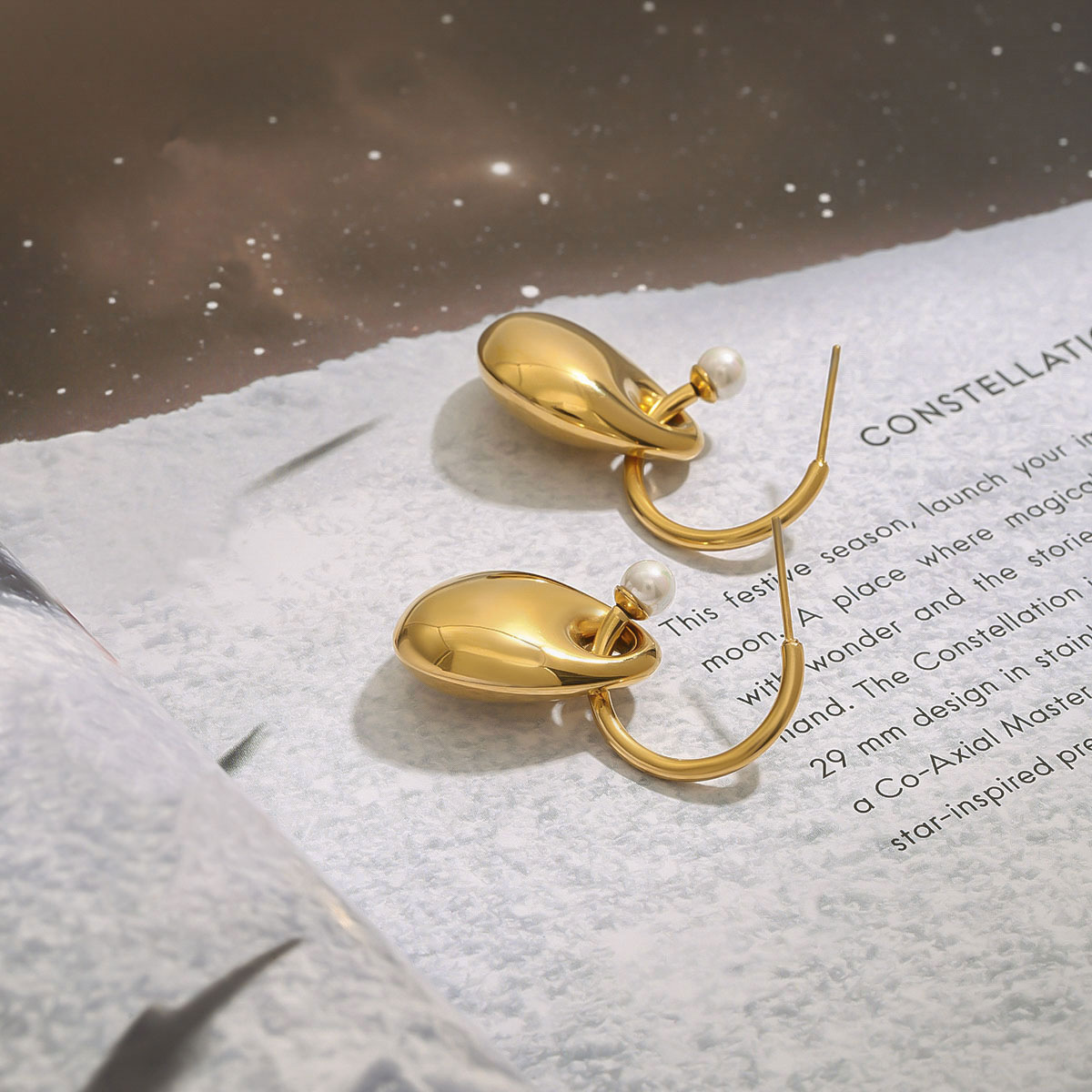 Boucle d'oreille goutte inox, Acier inoxydable 304, avec perle de plastique, Plaqué or 18K, bijoux de mode & pour femme, Vendu par paire