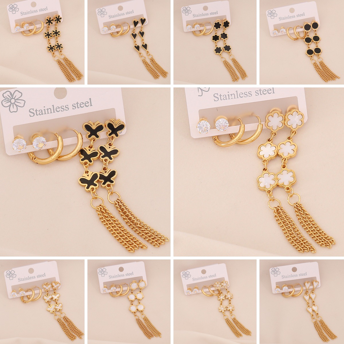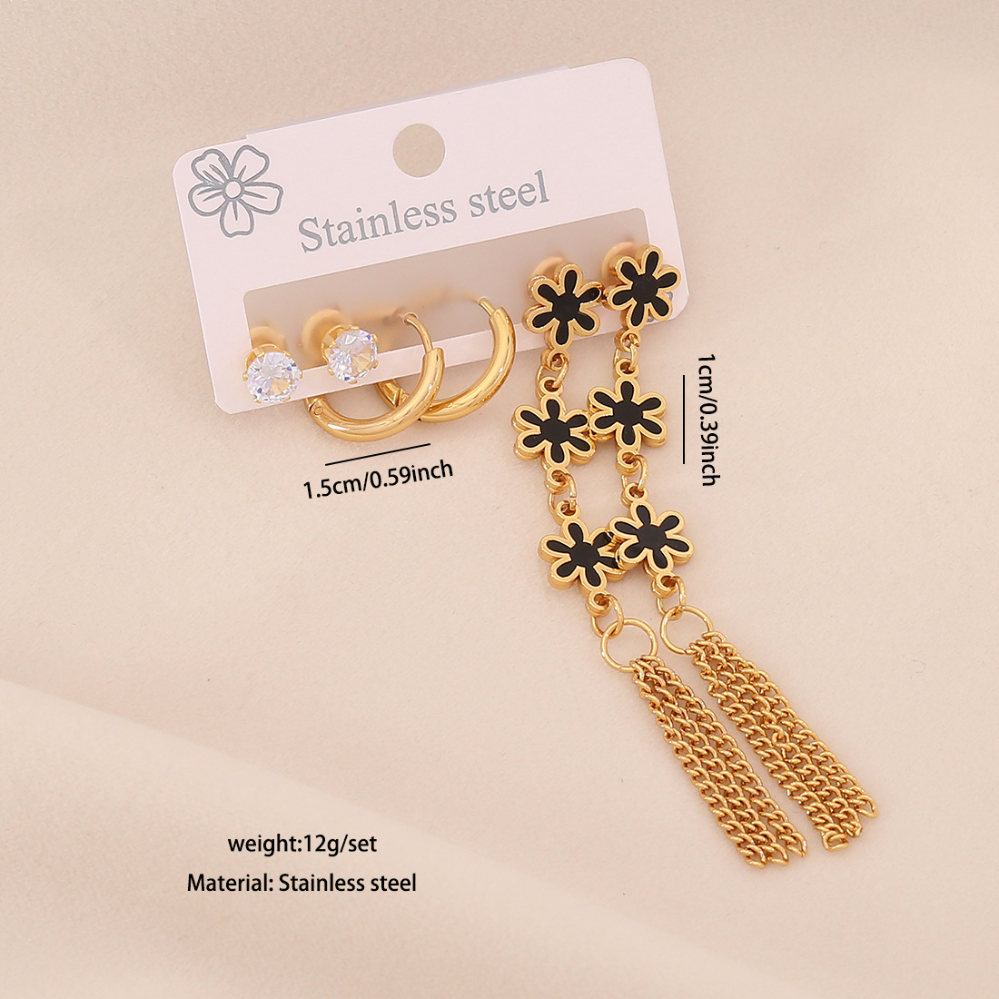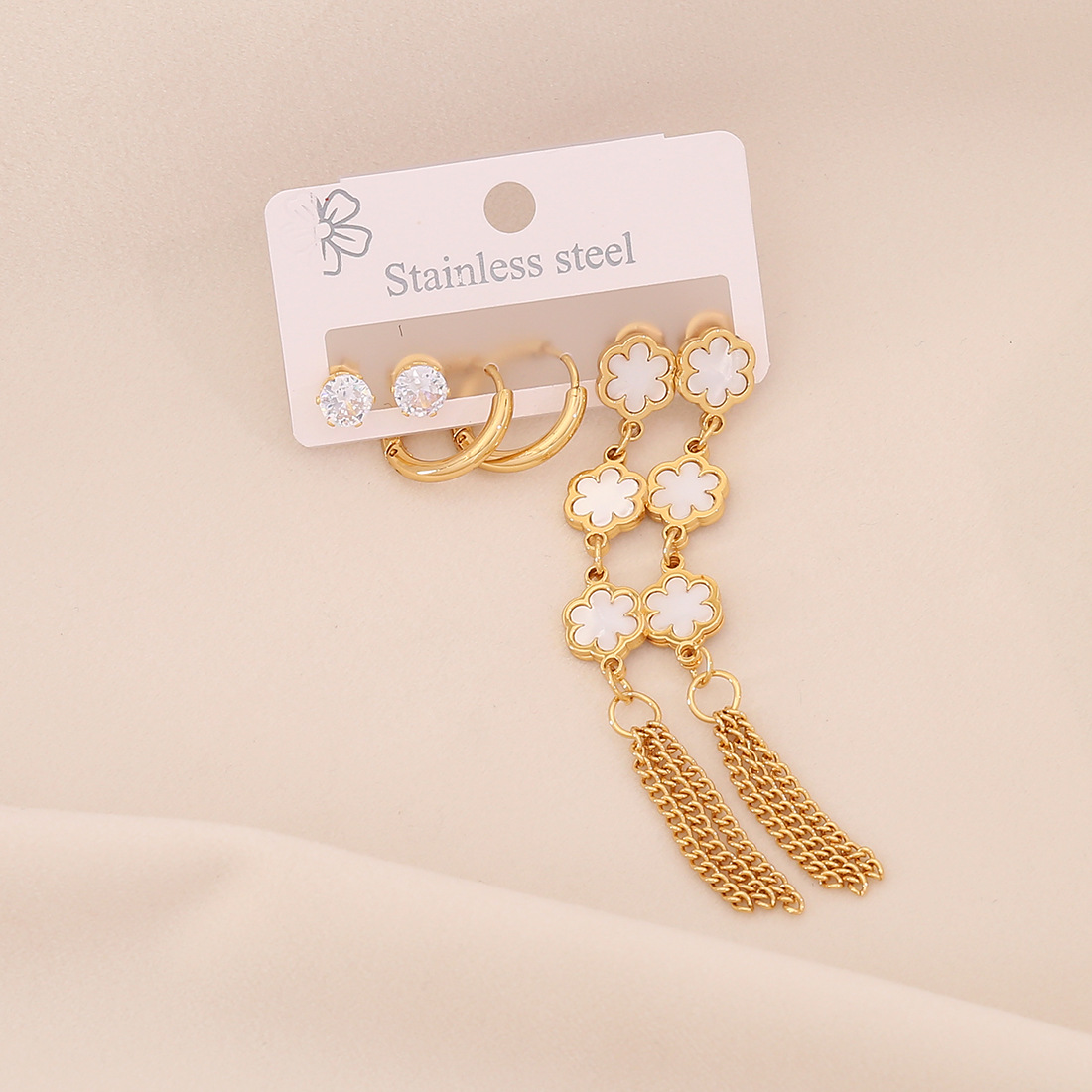 Boucle d'oreille goutte inox, Acier inoxydable 304, avec Acrylique, Placage de couleur d'or, trois pièces & styles différents pour le choix & pour femme & avec strass, plus de couleurs à choisir, Vendu par fixé
