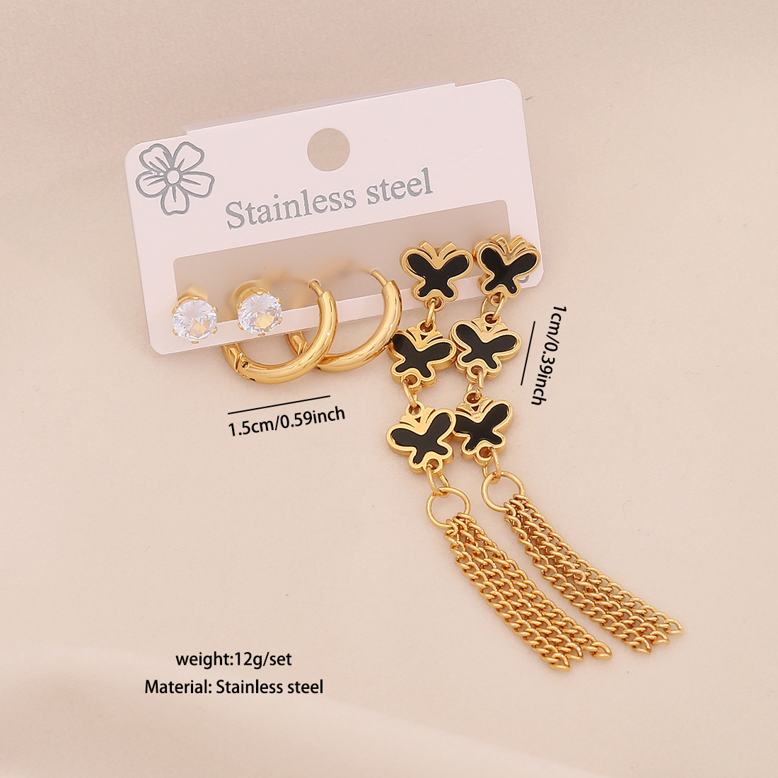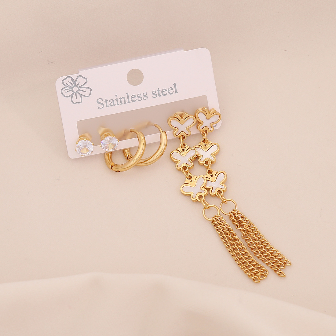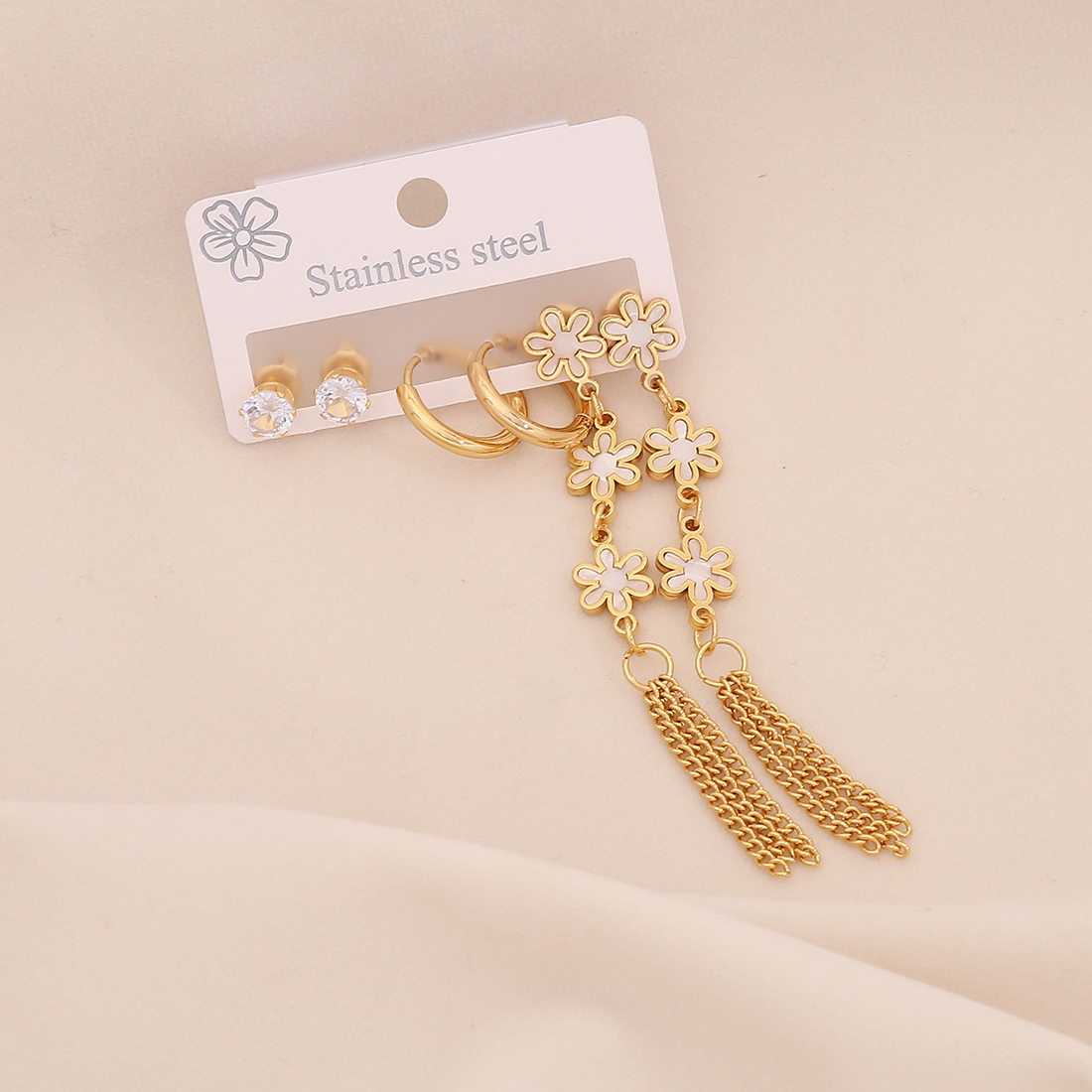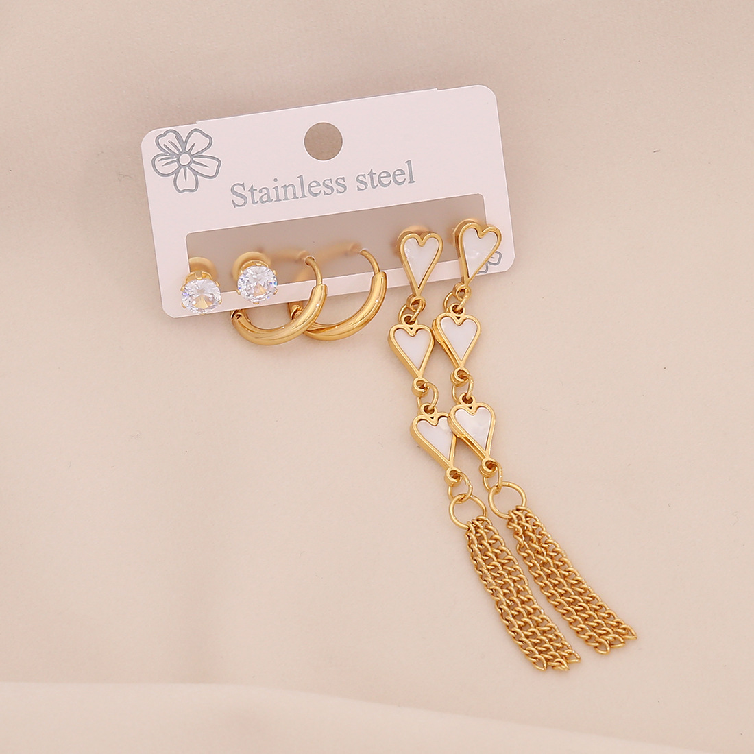 Boucle d'oreille goutte inox, Acier inoxydable 304, avec Acrylique, Placage de couleur d'or, trois pièces & styles différents pour le choix & pour femme & avec strass, plus de couleurs à choisir, Vendu par fixé