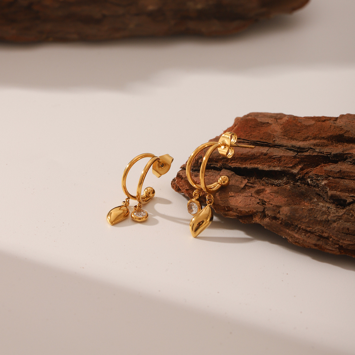 Boucle d'oreille goutte inox, acier inoxydable, avec strass, couleur originale  0.8mm, Vendu par paire