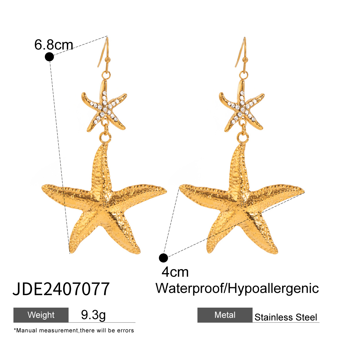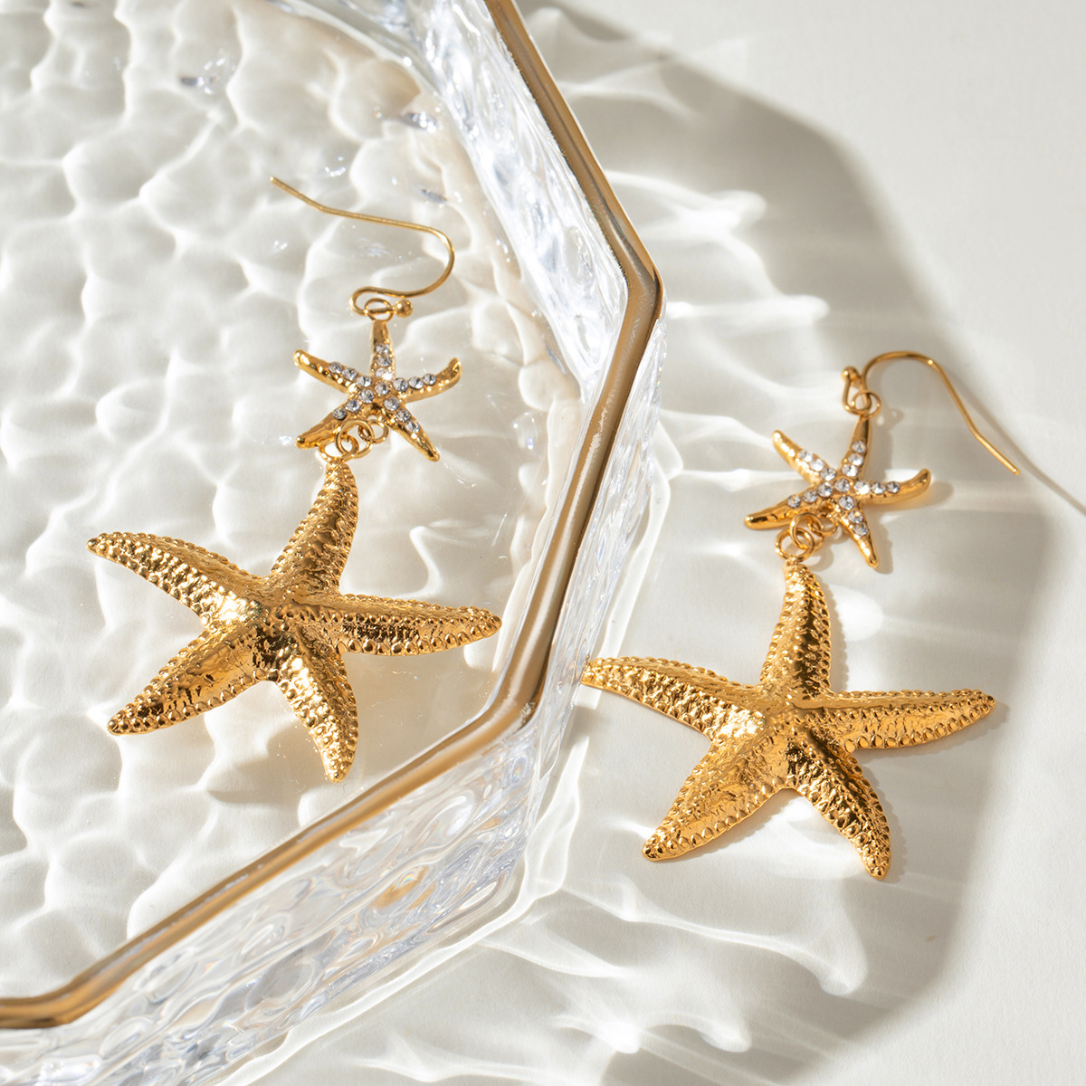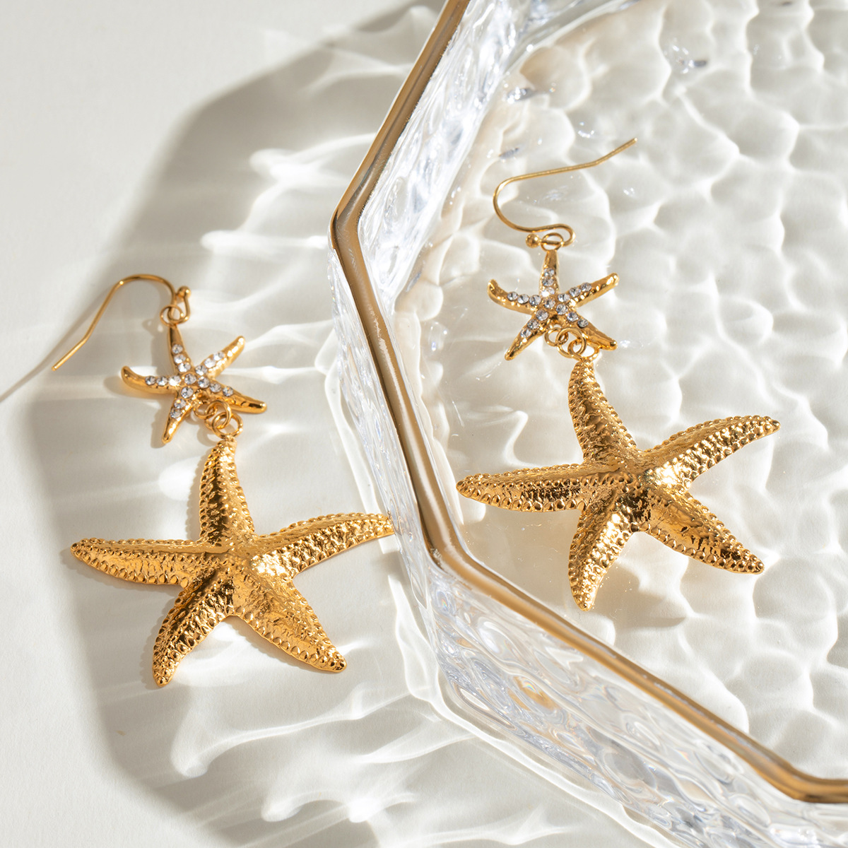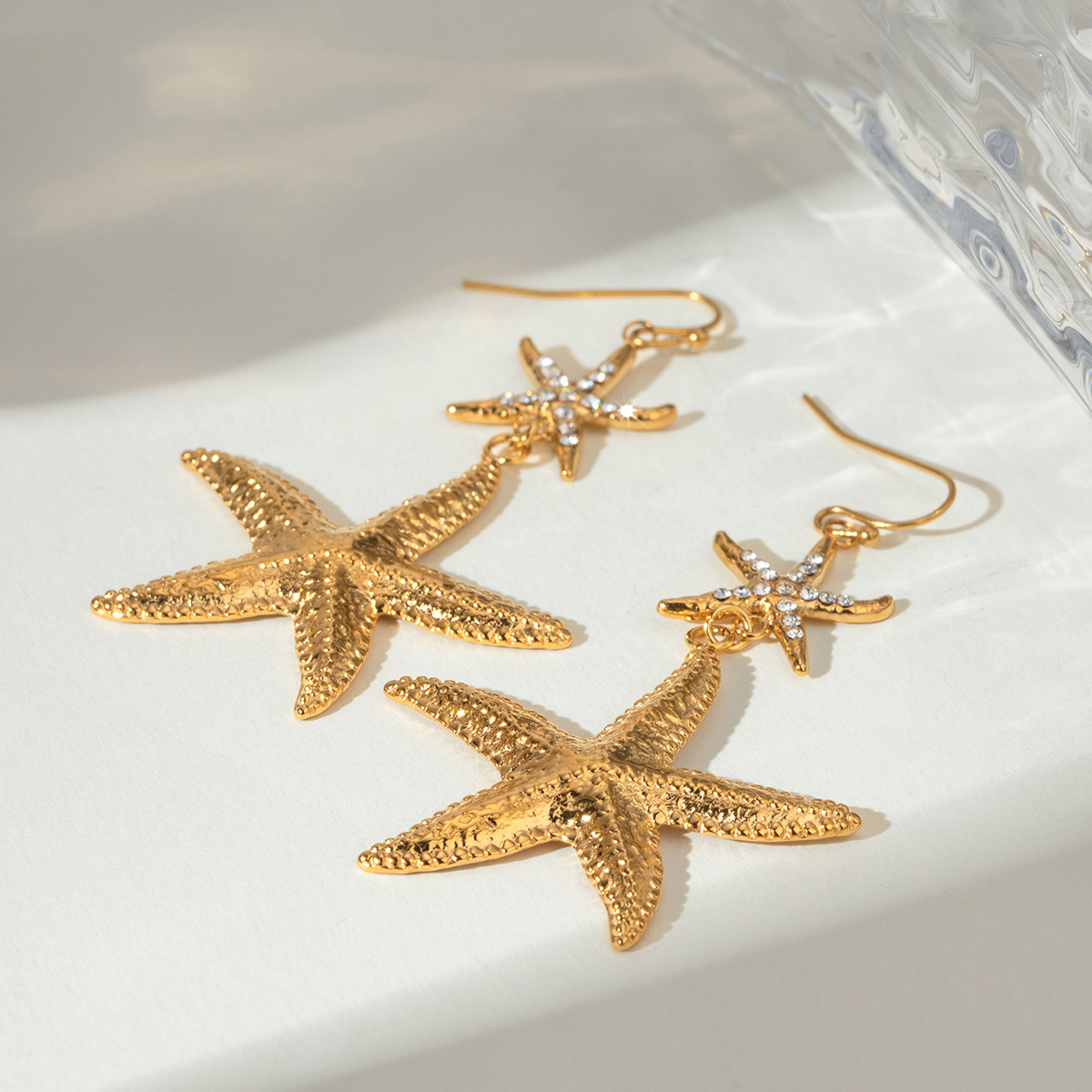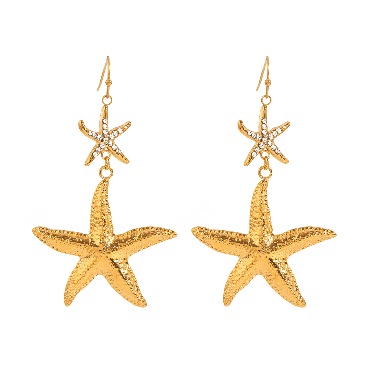 Boucle d'oreille goutte inox, Acier inoxydable 304, étoile de mer, Placage, bijoux de mode & pour femme & avec strass, doré, Vendu par paire