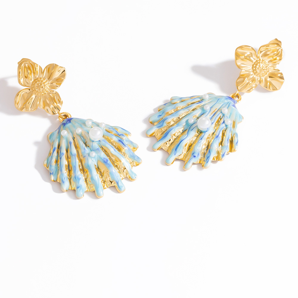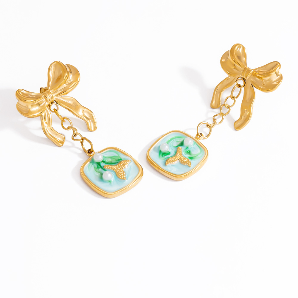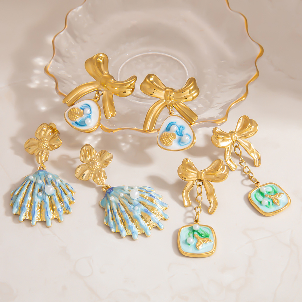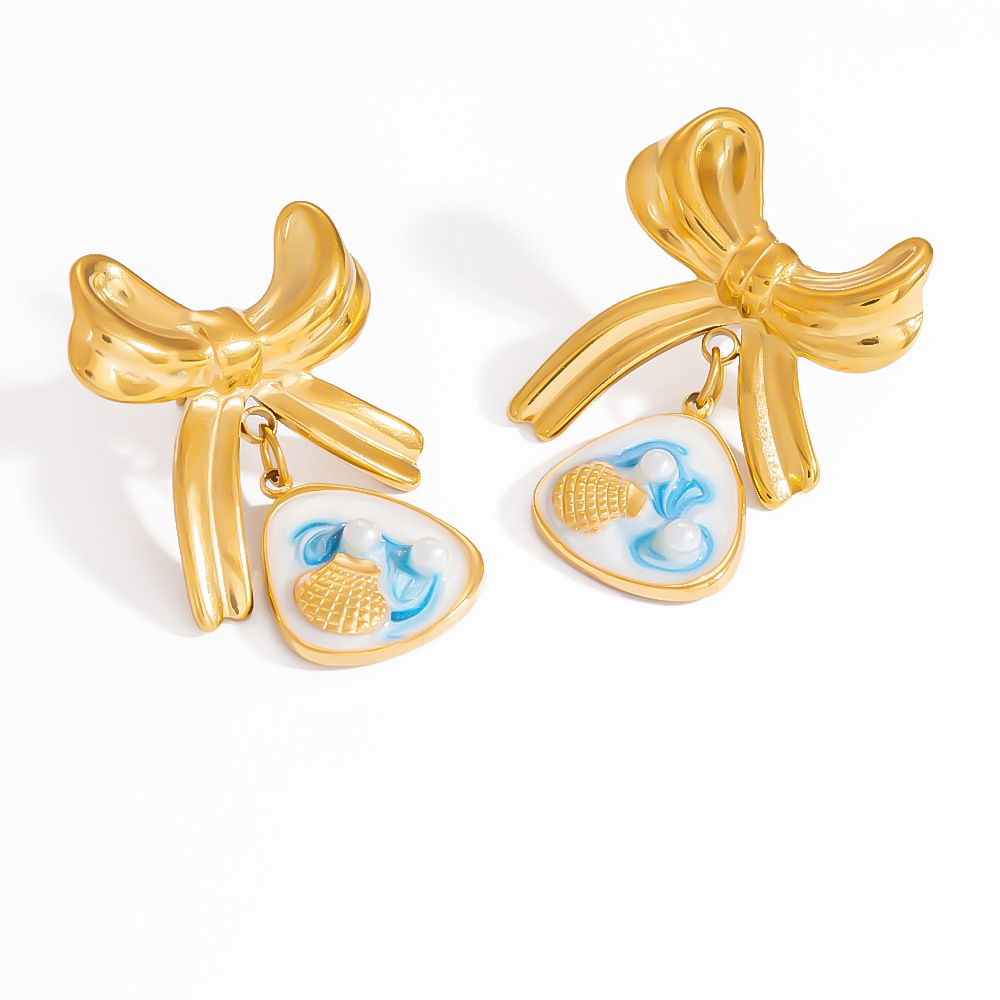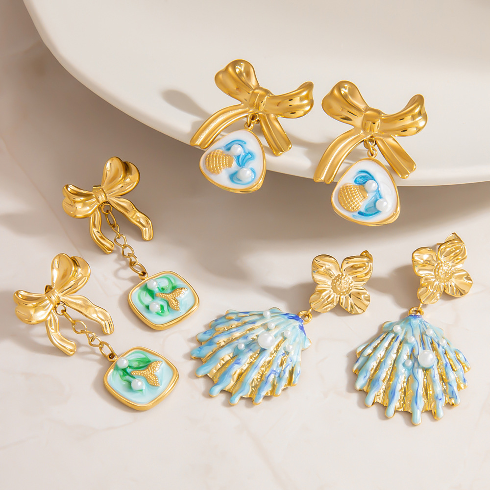 Boucle d'oreille goutte inox, Acier inoxydable 304, avec perle de plastique, Placage de couleur d'or, styles différents pour le choix & pour femme, plus de couleurs à choisir, Vendu par paire