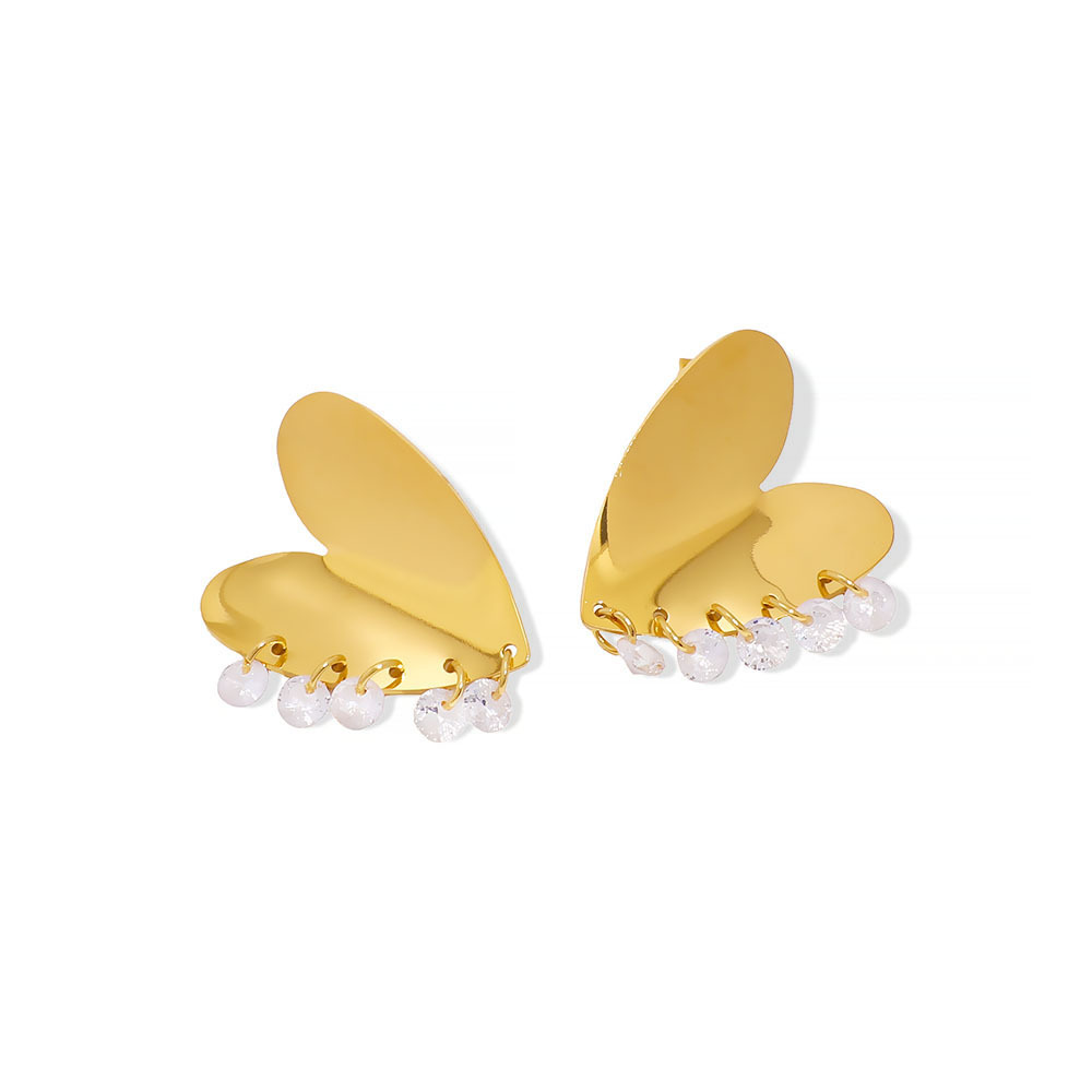Boucle d'oreille goutte inox, acier inoxydable, avec strass, couleur originale  0.8mm, Vendu par paire