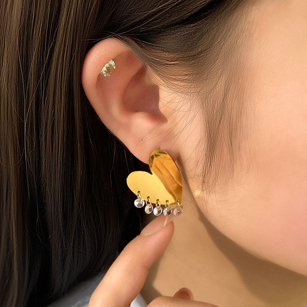 Boucle d'oreille goutte inox, Acier inoxydable 304, coeur, Placage de couleur d'or, bijoux de mode, doré, Vendu par paire