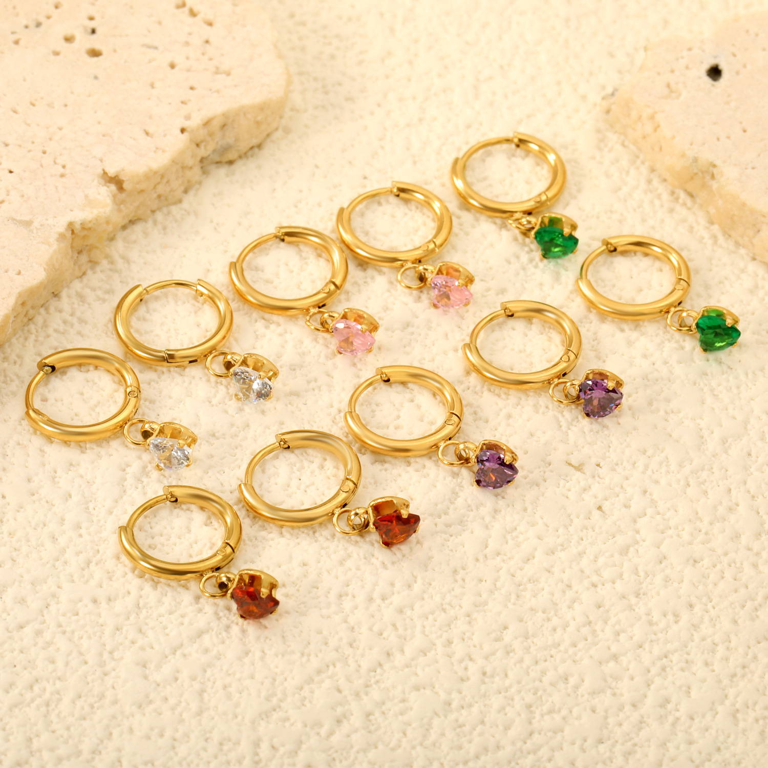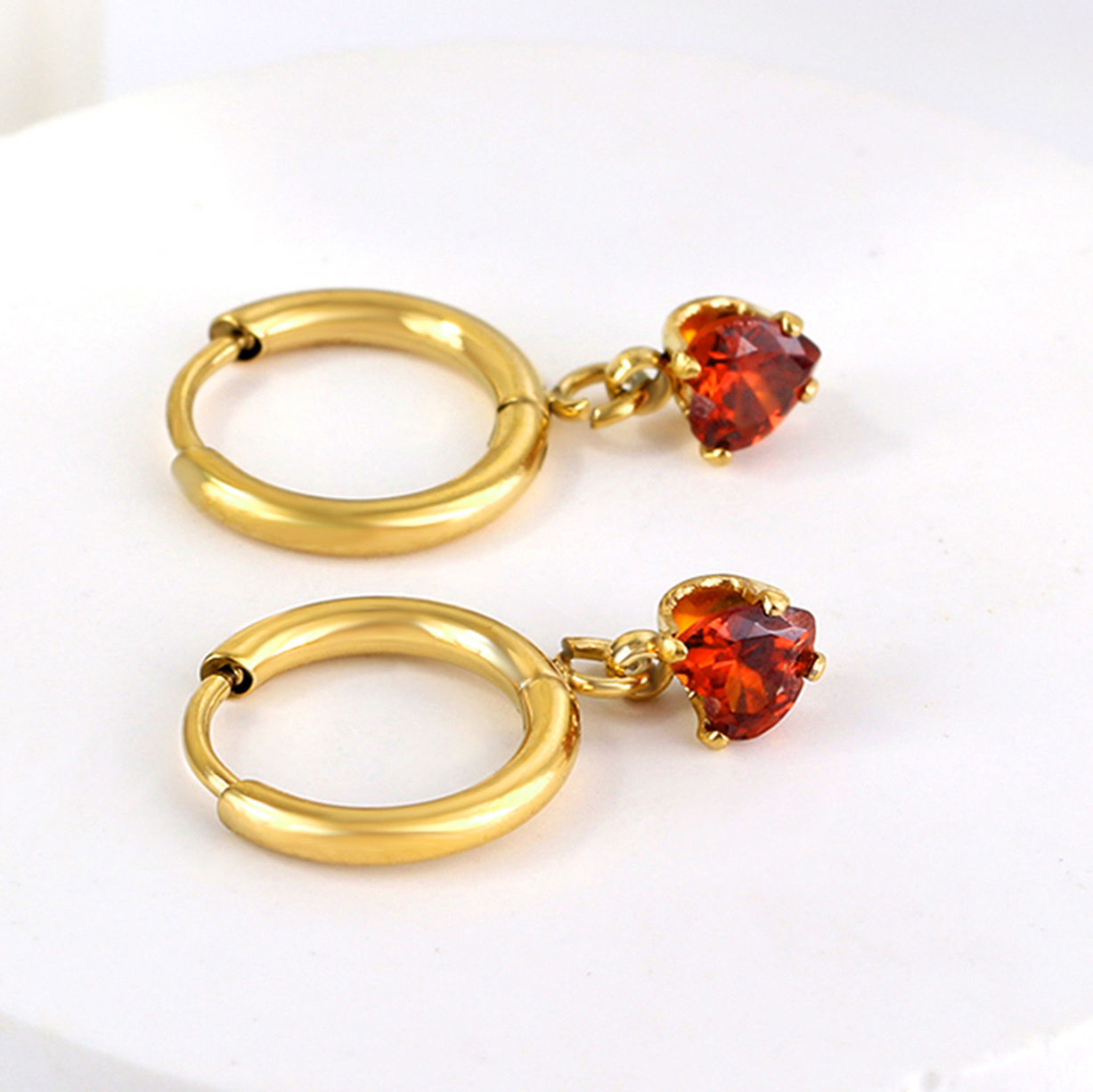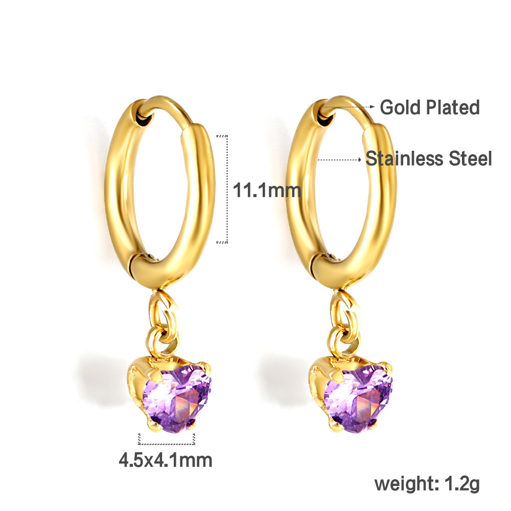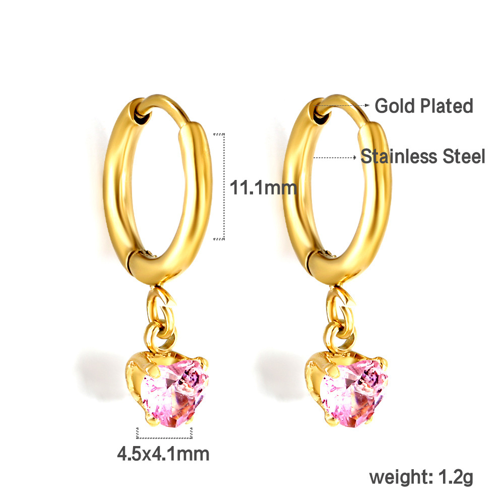 Boucle d'oreille goutte inox, Acier inoxydable 304, avec zircon cubique, coeur, Placage de couleur d'or, bijoux de mode & pour femme, plus de couleurs à choisir, Vendu par paire