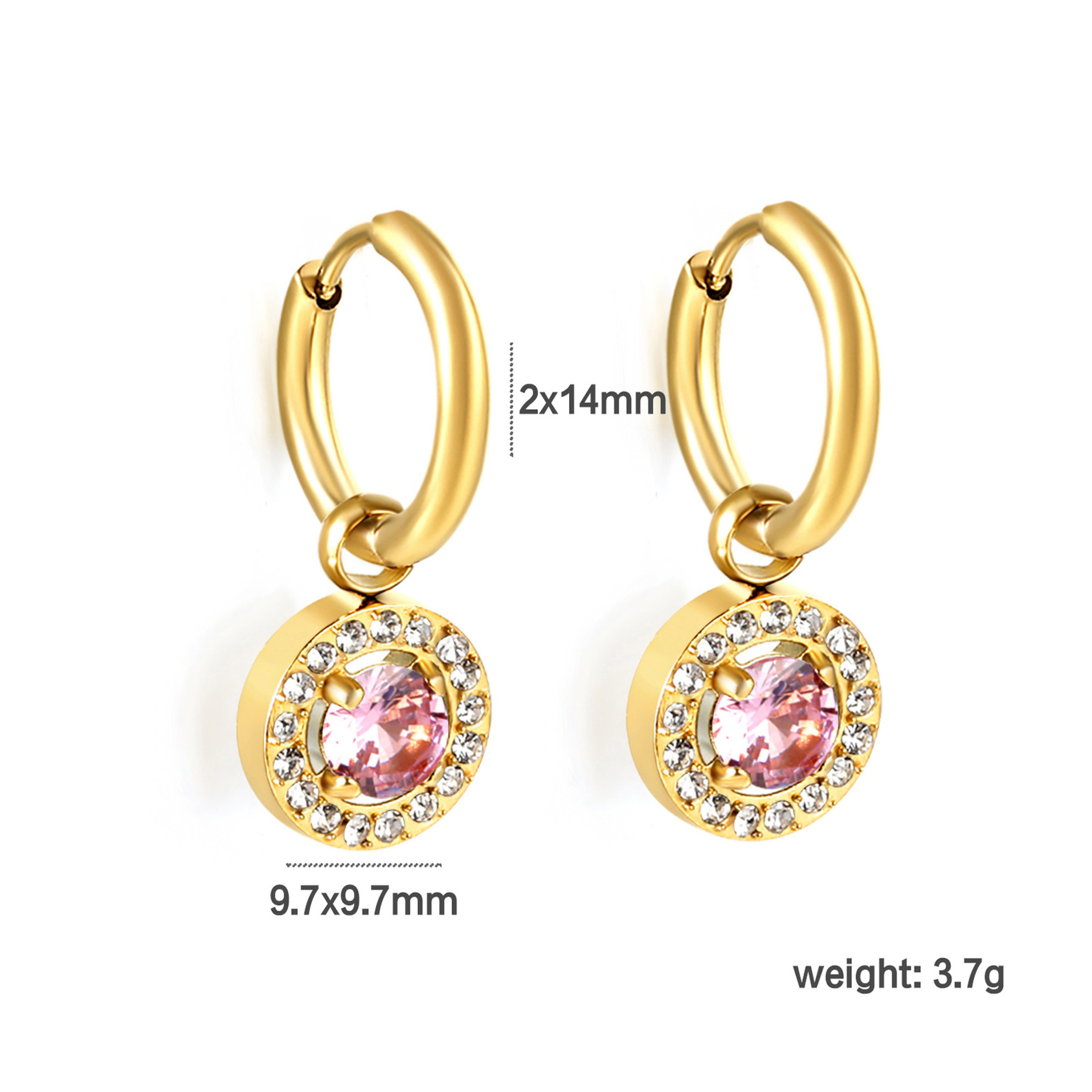 Boucle d'oreille goutte inox, Acier inoxydable 304, avec zircon cubique, Rond, Placage de couleur d'or, bijoux de mode & pour femme, plus de couleurs à choisir, Vendu par paire