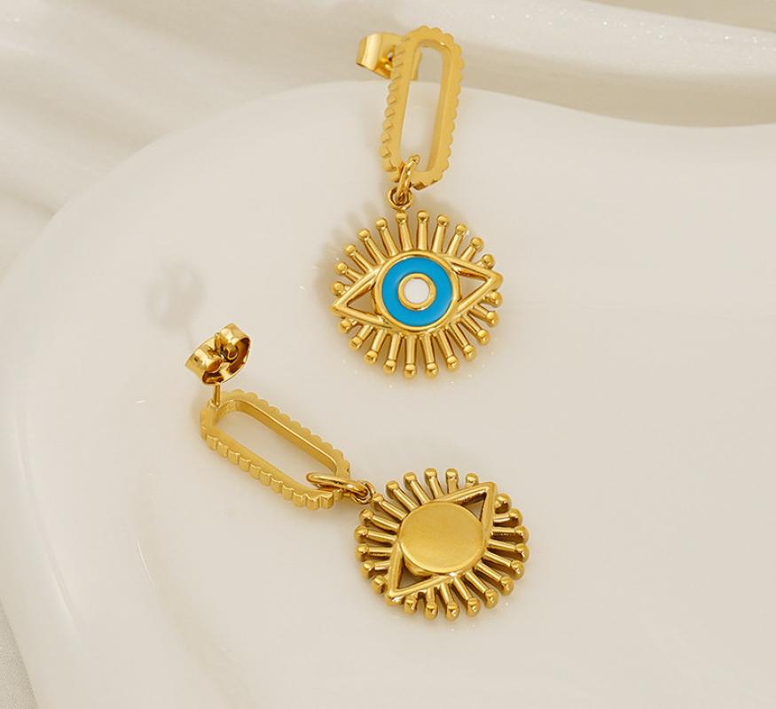 Boucle d'oreille goutte inox, Acier inoxydable 304, Plaqué or 18K, pour femme & émail & creux, Vendu par paire