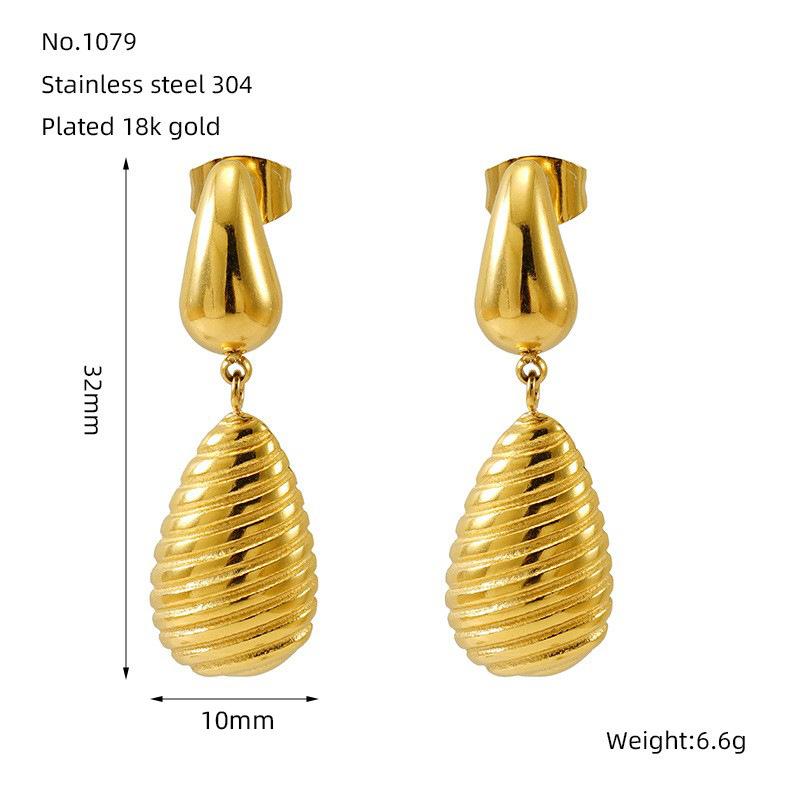 Boucle d'oreille goutte inox, Acier inoxydable 304, larme, Plaqué or 18K, bijoux de mode & pour femme, Vendu par paire