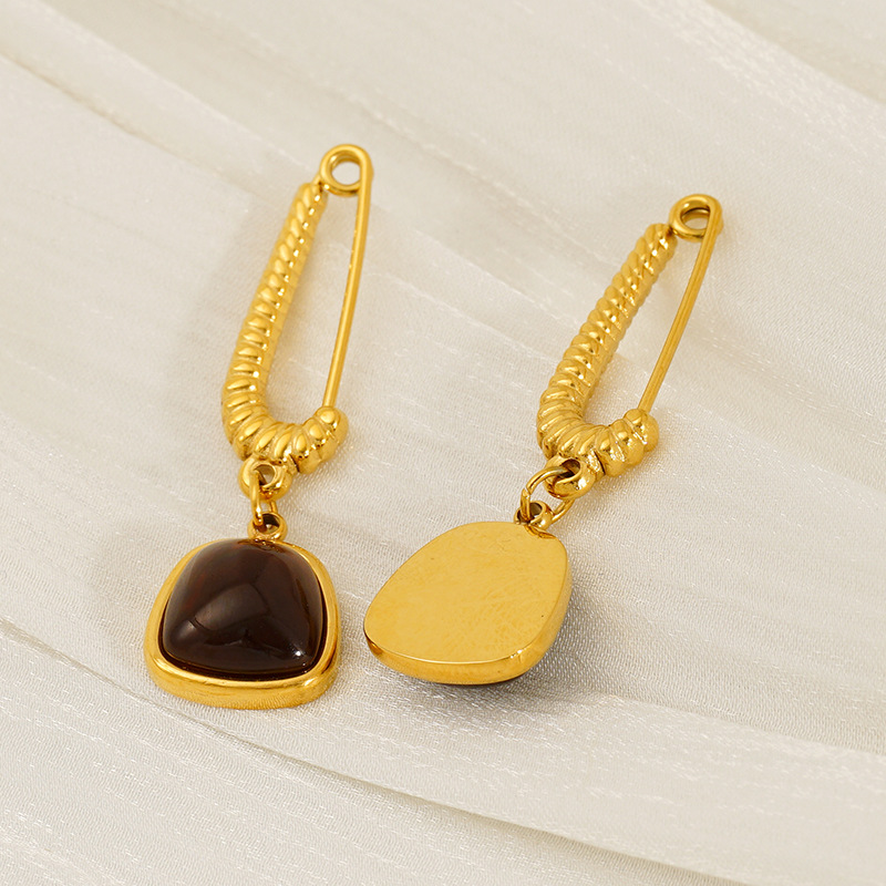 Boucle d'oreille goutte inox, Acier inoxydable 304, avec Pierre naturelle, Plaqué or 18K, bijoux de mode & pour femme & creux, Vendu par paire