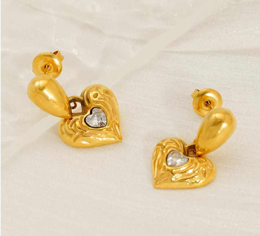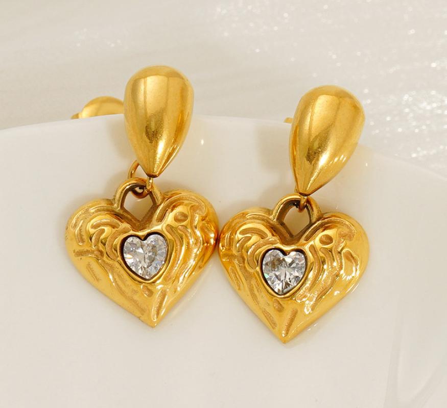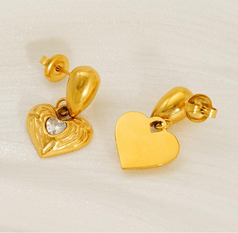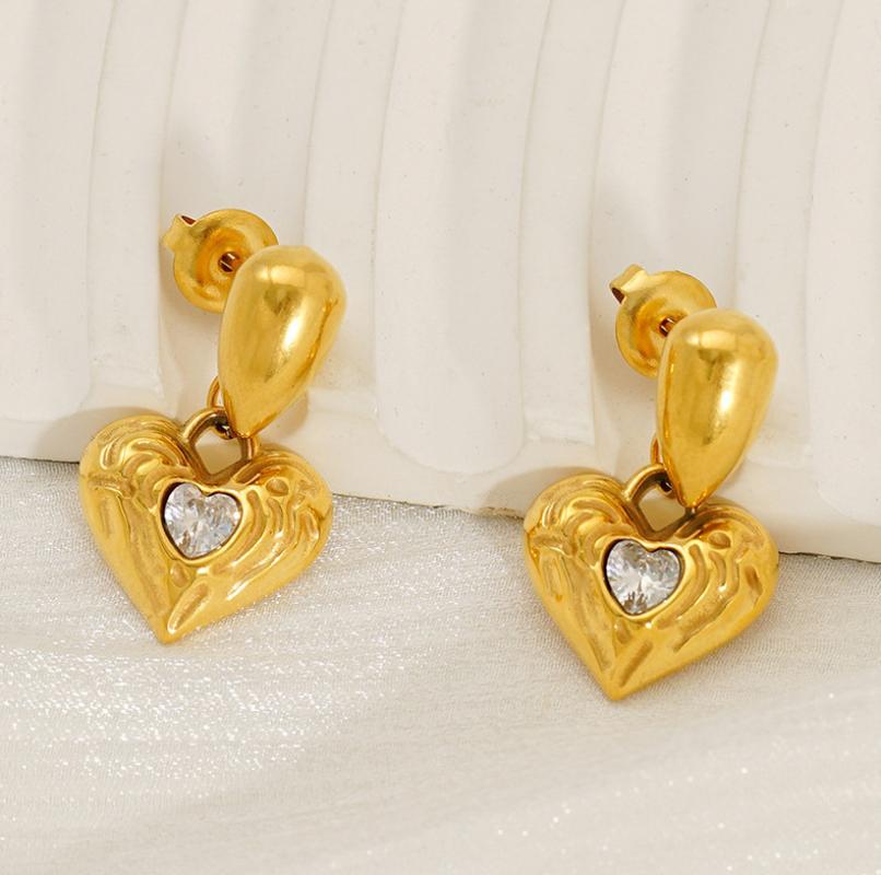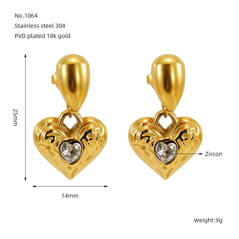 Boucle d'oreille goutte inox, Acier inoxydable 304, coeur, Plaqué or 18K, bijoux de mode & pavé de micro zircon & pour femme, Vendu par paire