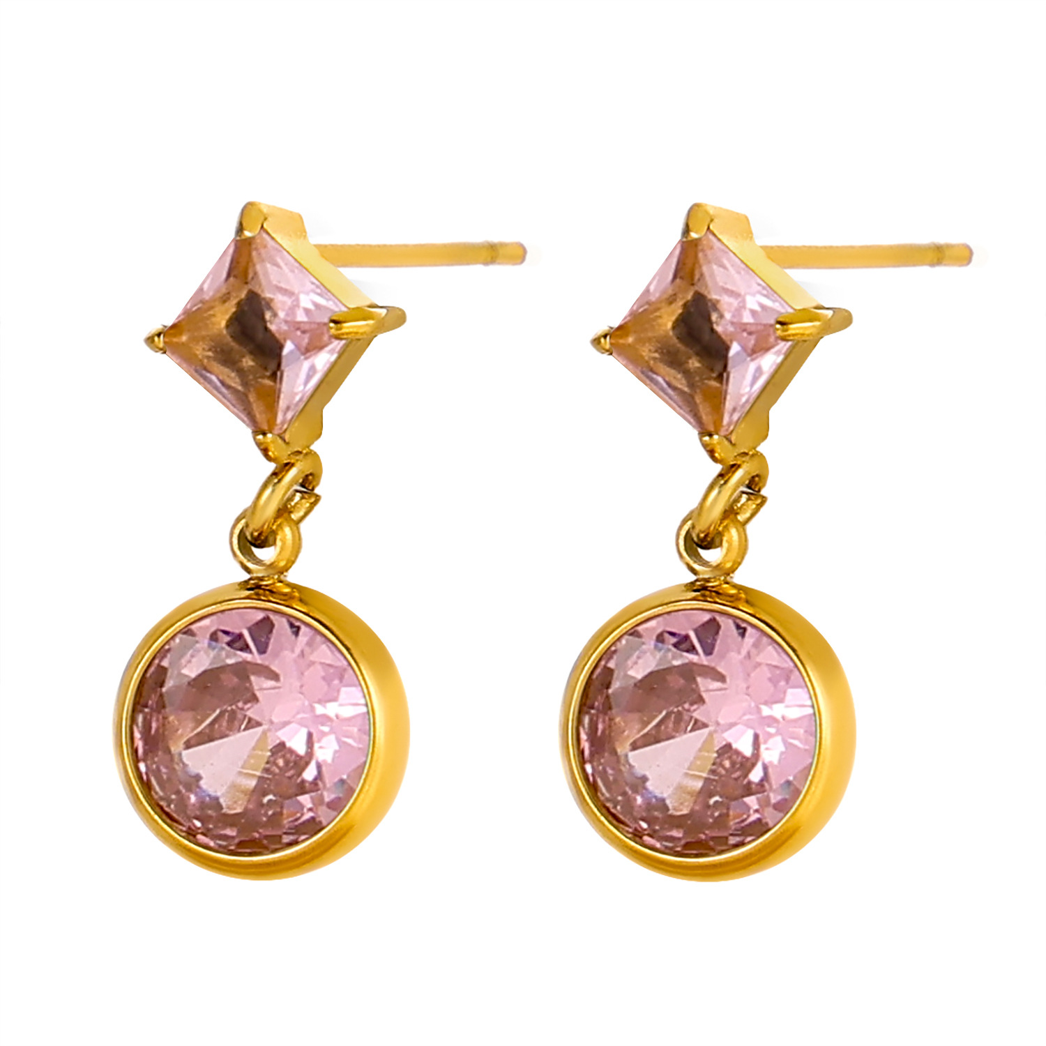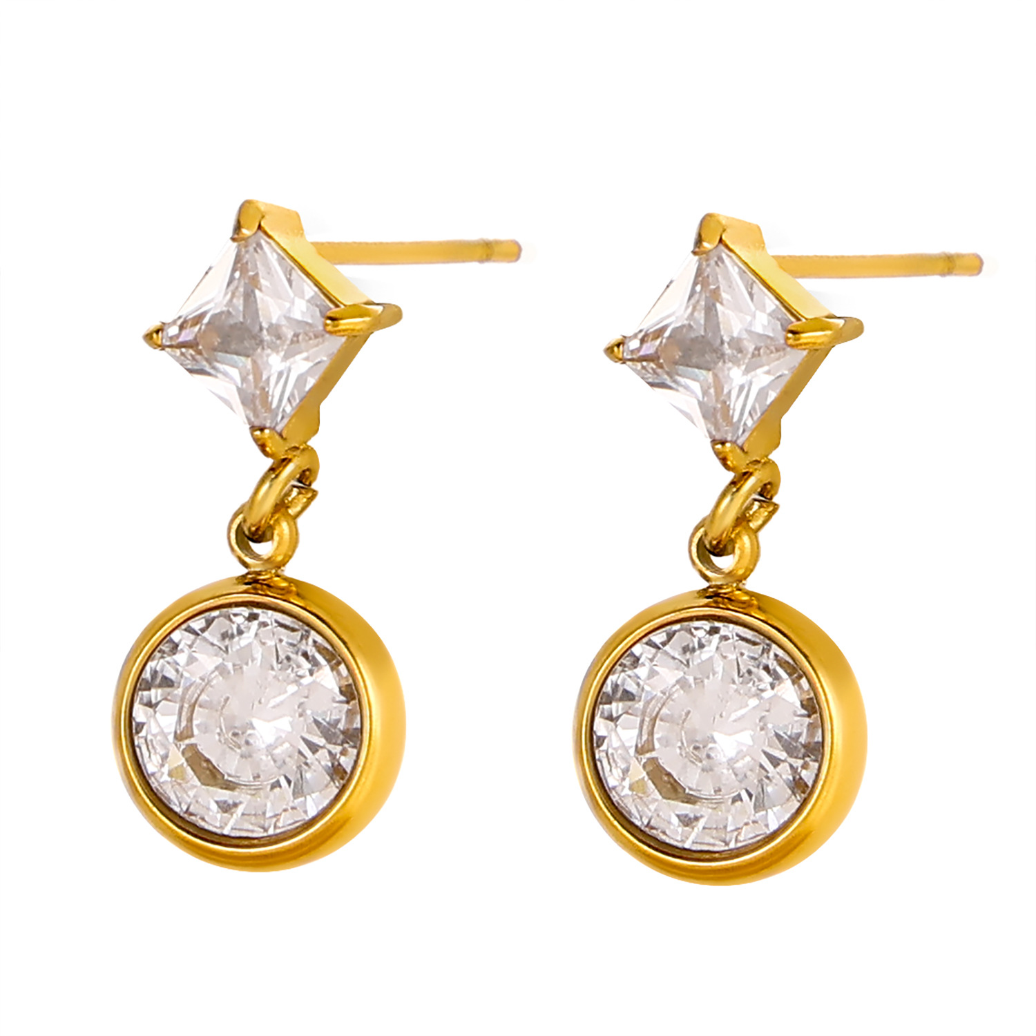 Boucle d'oreille goutte inox, acier inoxydable, avec strass, couleur originale  0.8mm, Vendu par paire