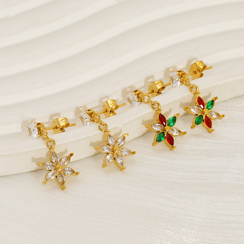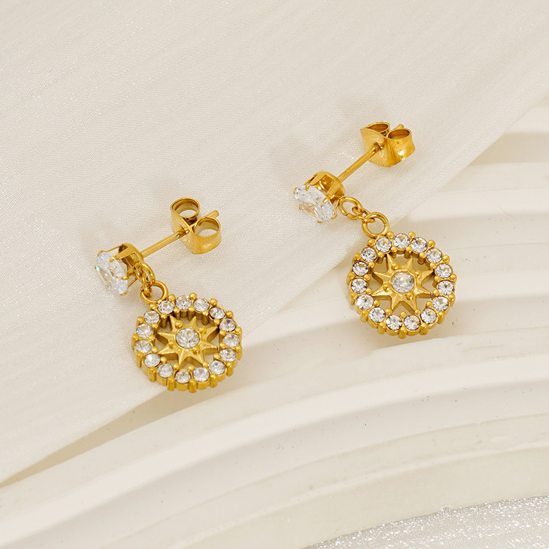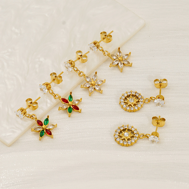 Boucle d'oreille goutte inox, Acier inoxydable 304, avec zircon cubique, Plaqué or 18K, styles différents pour le choix & pour femme & avec strass, Vendu par paire
