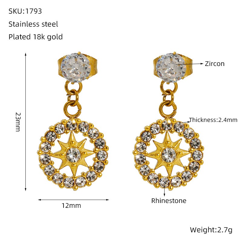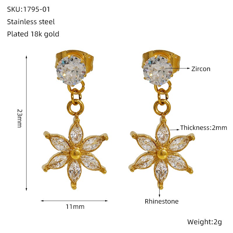 Boucle d'oreille goutte inox, acier inoxydable, avec strass, couleur originale  0.8mm, Vendu par paire