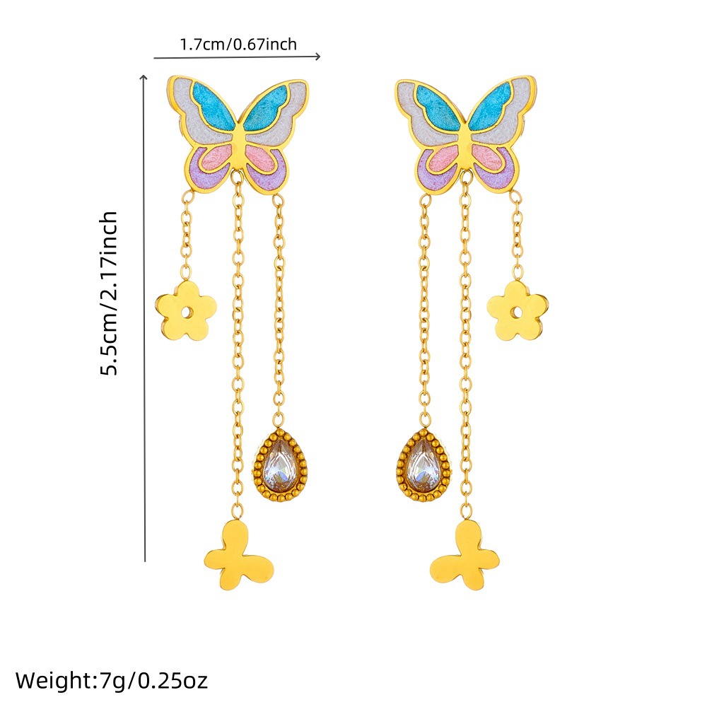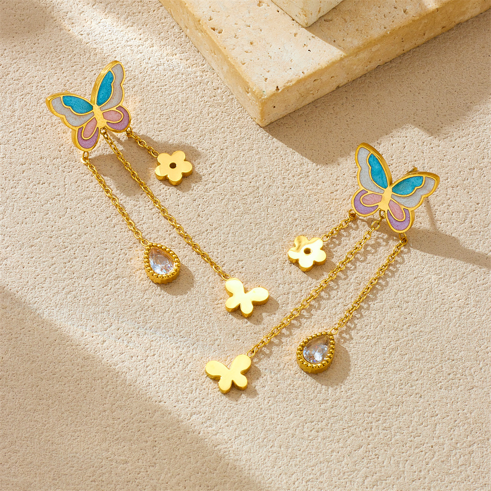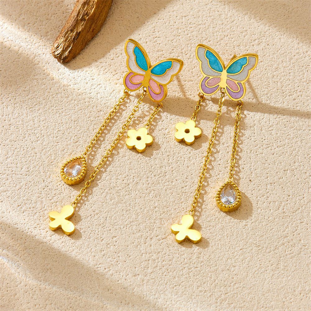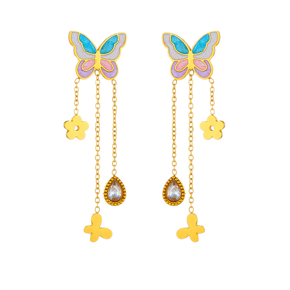 Boucle d'oreille goutte inox, Acier inoxydable 304, Placage, pour femme & émail & avec strass, doré, Vendu par paire